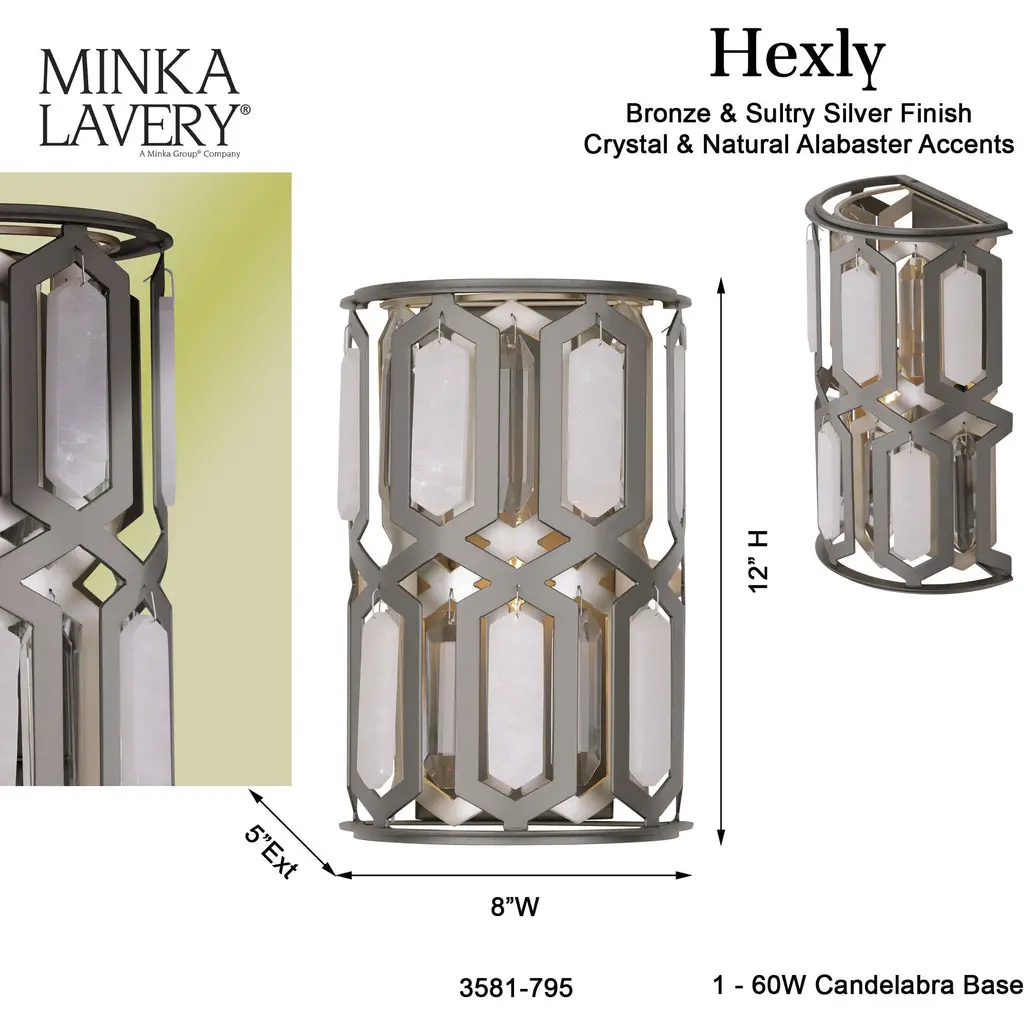 This 1 light Wall Sconce from the Hexly collection by Minka-Lavery will enhance your home with a perfect mix of form and function. The features include a Bronze and Sultry Silver finish applied by experts. This item qualifies for free shipping!