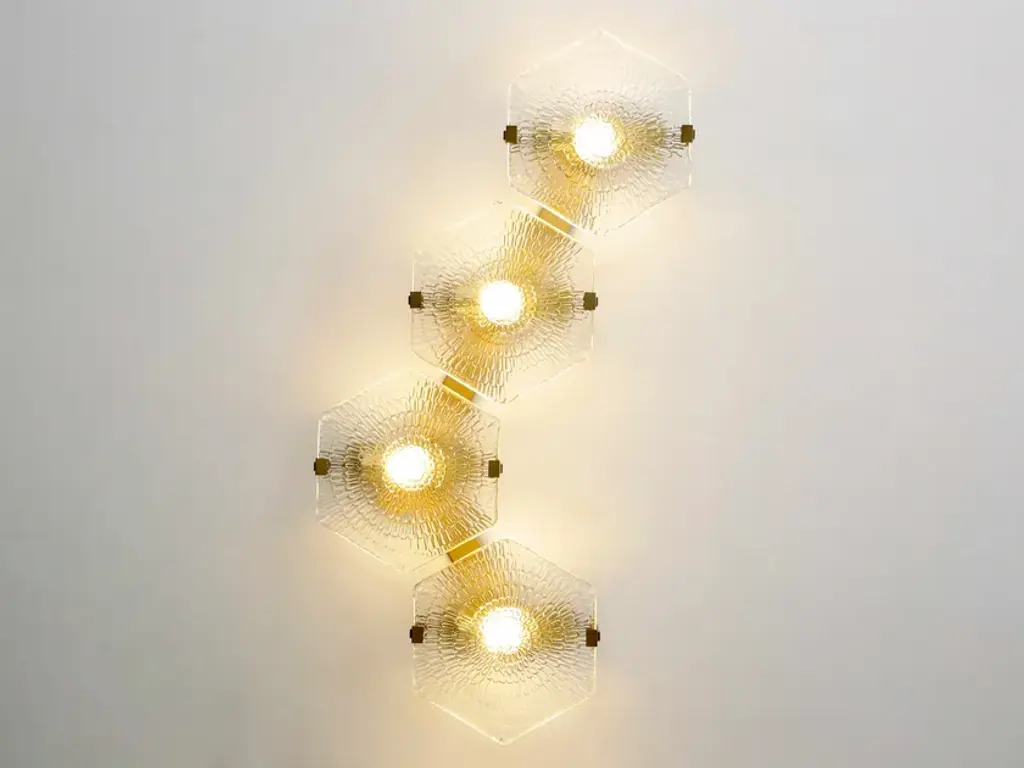 HEXXA WALL LIGHT 04 comes with the G9 dimmable LED, 220 V, 3200 K light sources.The strict geometrical shape of a hexagon and the metal base might seem strict compared to other Patinas luminaires, but the possibility of this form to be extended in 6 directions gives it that "je ne sais quoi" you might have been looking for. The HEXXA wall lights can be installed anyhow you like on the wall. All of our HEXXA lamps are handmade from start to finish. Patinas offers a 10 year warranty.All metal fixtures are available in 3 different finishes: black, silver, gold.