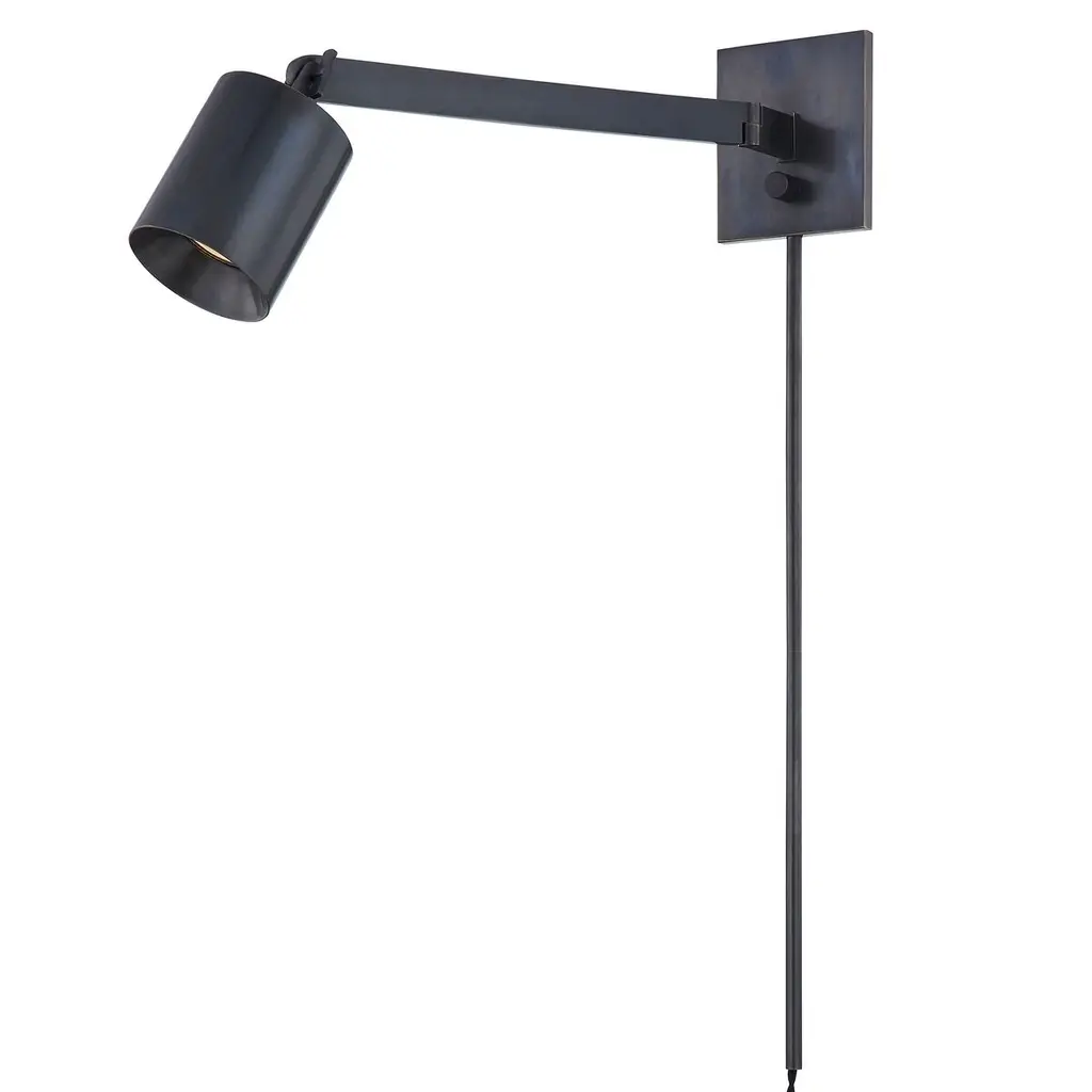 A smooth, cylindrical shade paired with a square backplate or base are the hallmarks of Highgrove's clean, modern look. The petite spotlight shade rotates and the arm of the portable sconce and floor lamp extends and articulates for ultimate versatility and functionality. Part of our Mark D. Sikes collection.