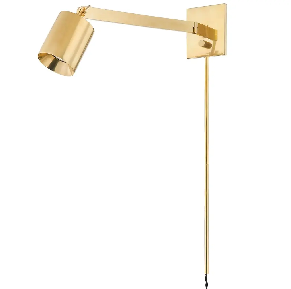 The Highgrove Plug-in Wall Sconce from Hudson Valley Lighting showcases a modern and polished aesthetic, highlighted by its cylindrical shade and square backplate or base. Offering enhanced flexibility, the spotlight shade on this compact piece can rotate. At the same time, this portable sconce is equipped with an extending and articulating arm, ensuring remarkable versatility and functionality. This product stands as an exceptional addition with its sophisticated design and superior performance.