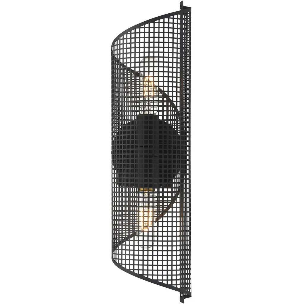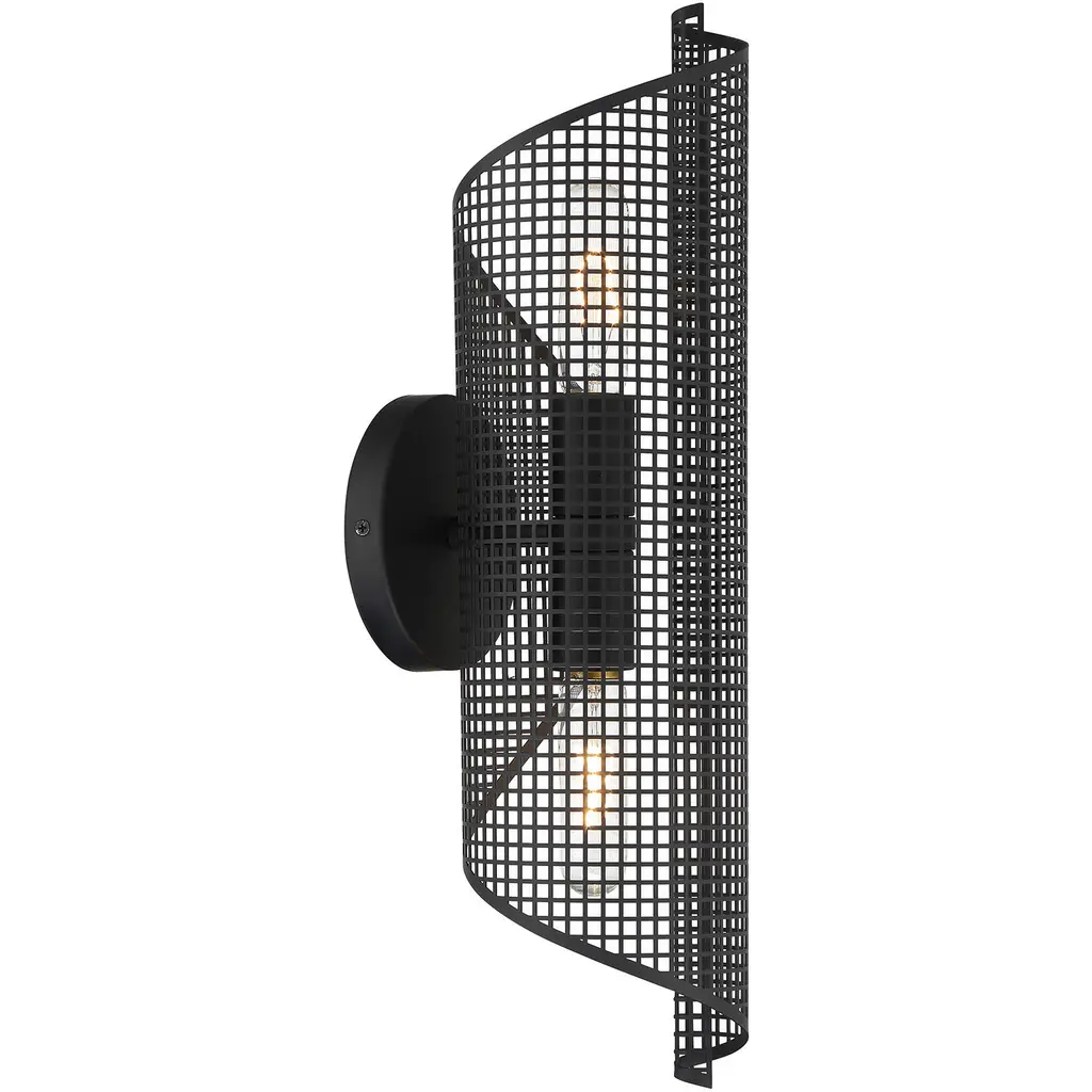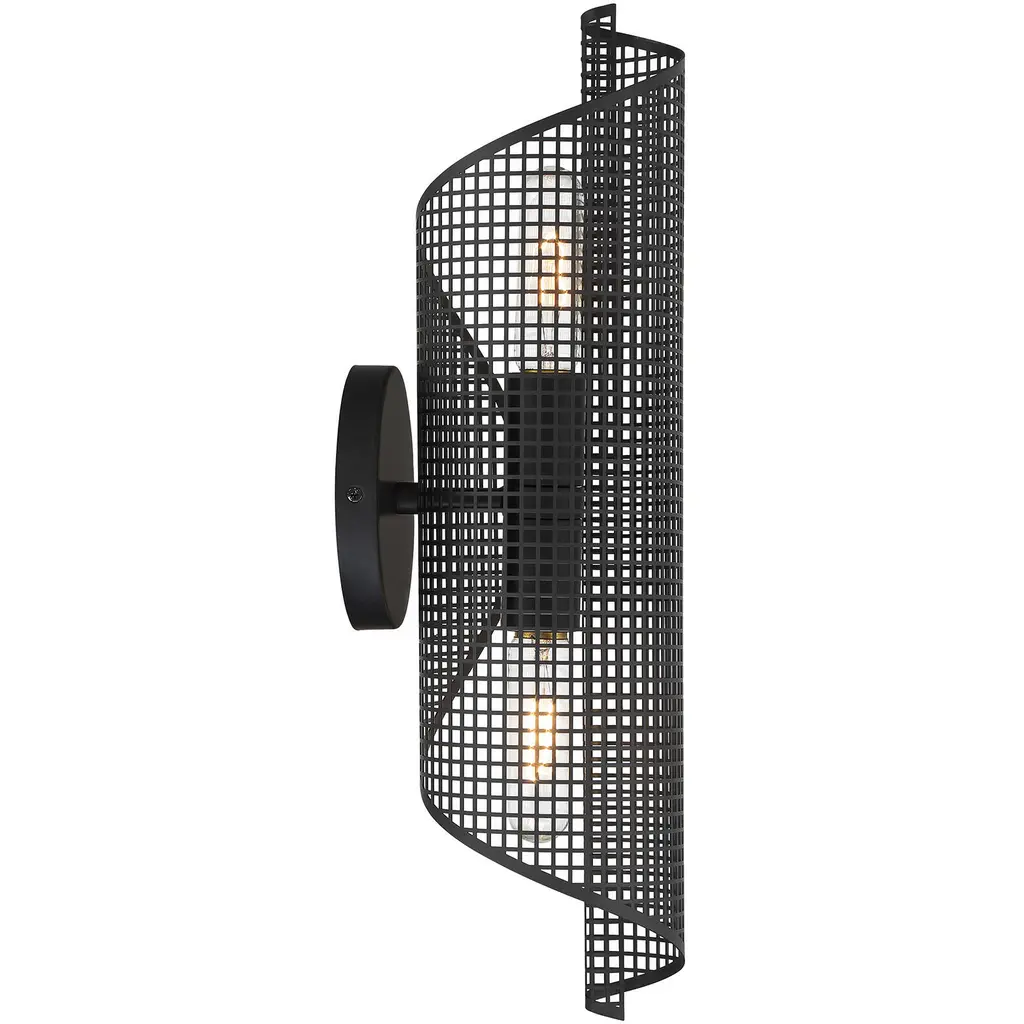 The Savoy House Hillbourne 2-light sconce is a ribbon of intriguing urban loft style. Its perforated metal shade, finished in Matte Black, appears to swirl and twirl on the wall. Use it alone or in groupings Hillbourne is 20" in height, 5.5" in width and extends 6.5" from the wall. Uses two standard size bulbs of up to 60 watts per bulb. Bulbs not included. This sconce is damp area rated.