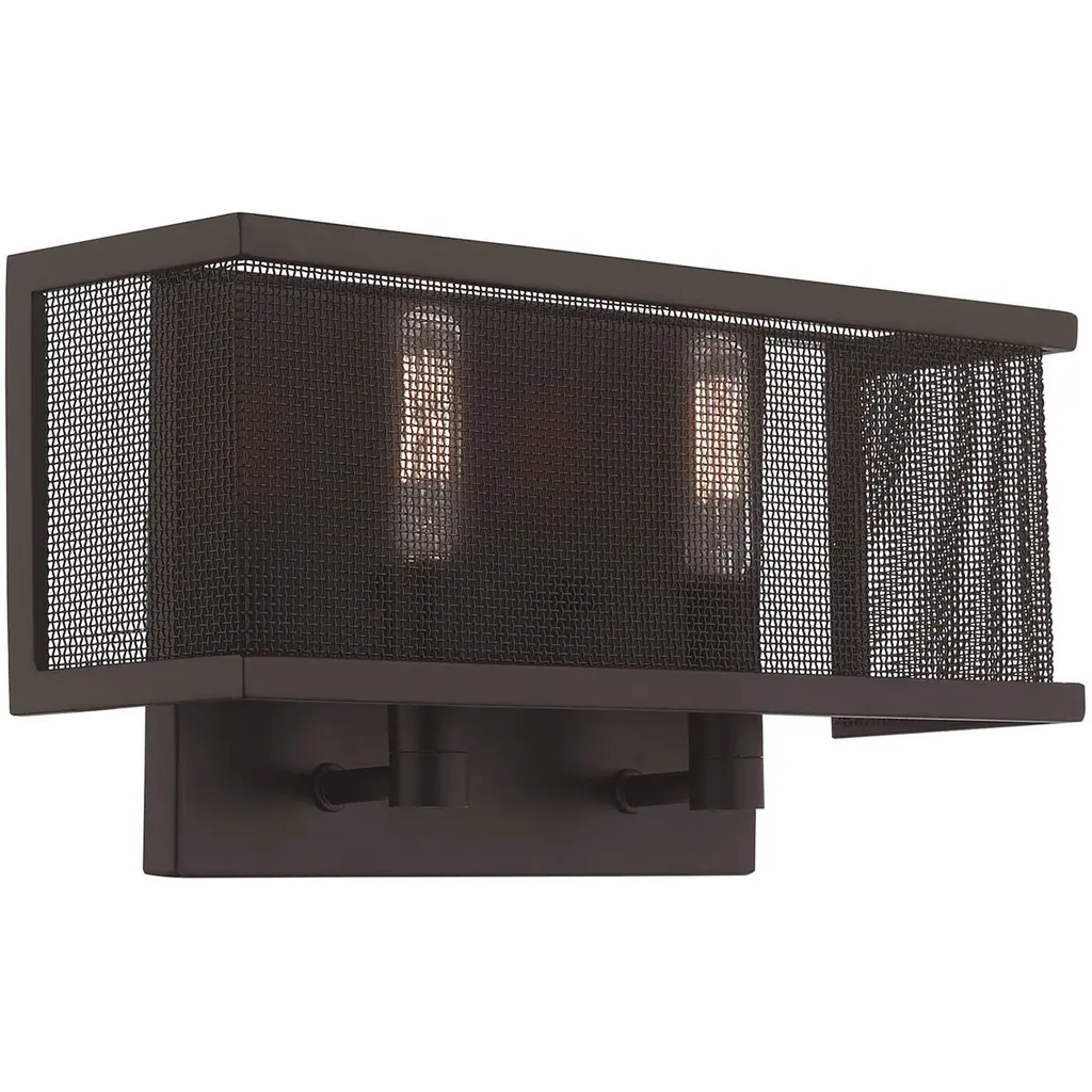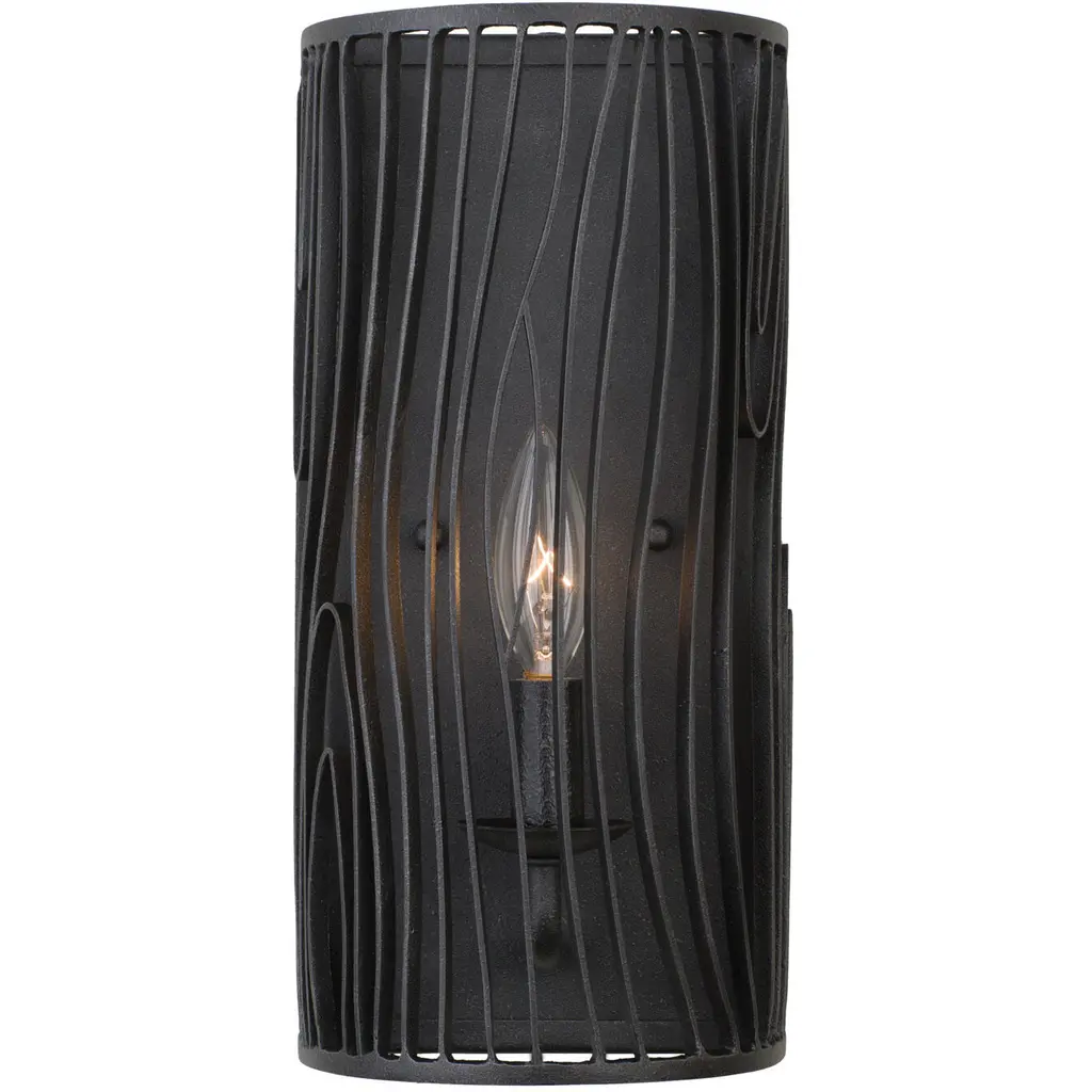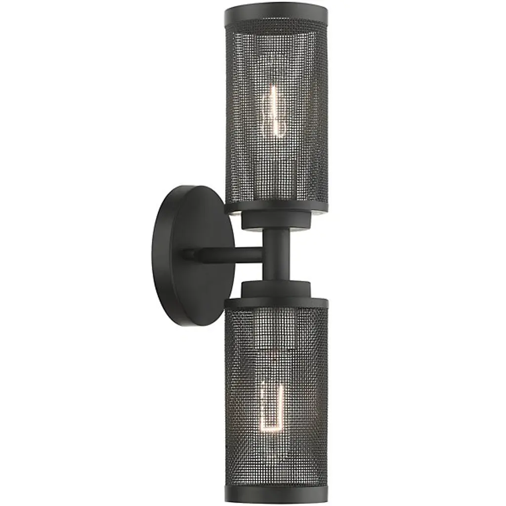 The Savoy House Hillbourne 2-light sconce is a ribbon of intriguing urban loft style. Its perforated metal shade, finished in Matte Black, appears to swirl and twirl on the wall. Use it alone or in groupings Hillbourne is 20" in height, 5.5" in width and extends 6.5" from the wall. Uses two standard size bulbs of up to 60 watts per bulb. Bulbs not included. This sconce is damp area rated.