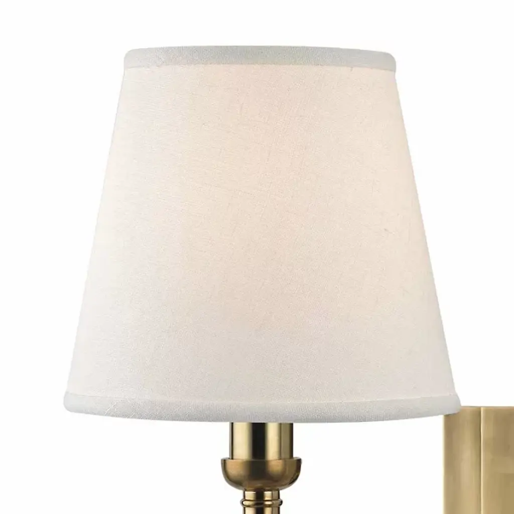 Design by Hudson Valley Lighting, 2014. The simply stylish Hillsdale Swivel Wall Sconce is versatile in function and application. The wall light combines the ingenuity of early-twentieth century task lighting with a smart decorative touch from the twenty-first. Vintage cast swivels give the sconce wide-range adjustability, while the custom contemporary linen shade swathes interior spaces in soft ambient light. Clip shade attachment. Hard-wired.