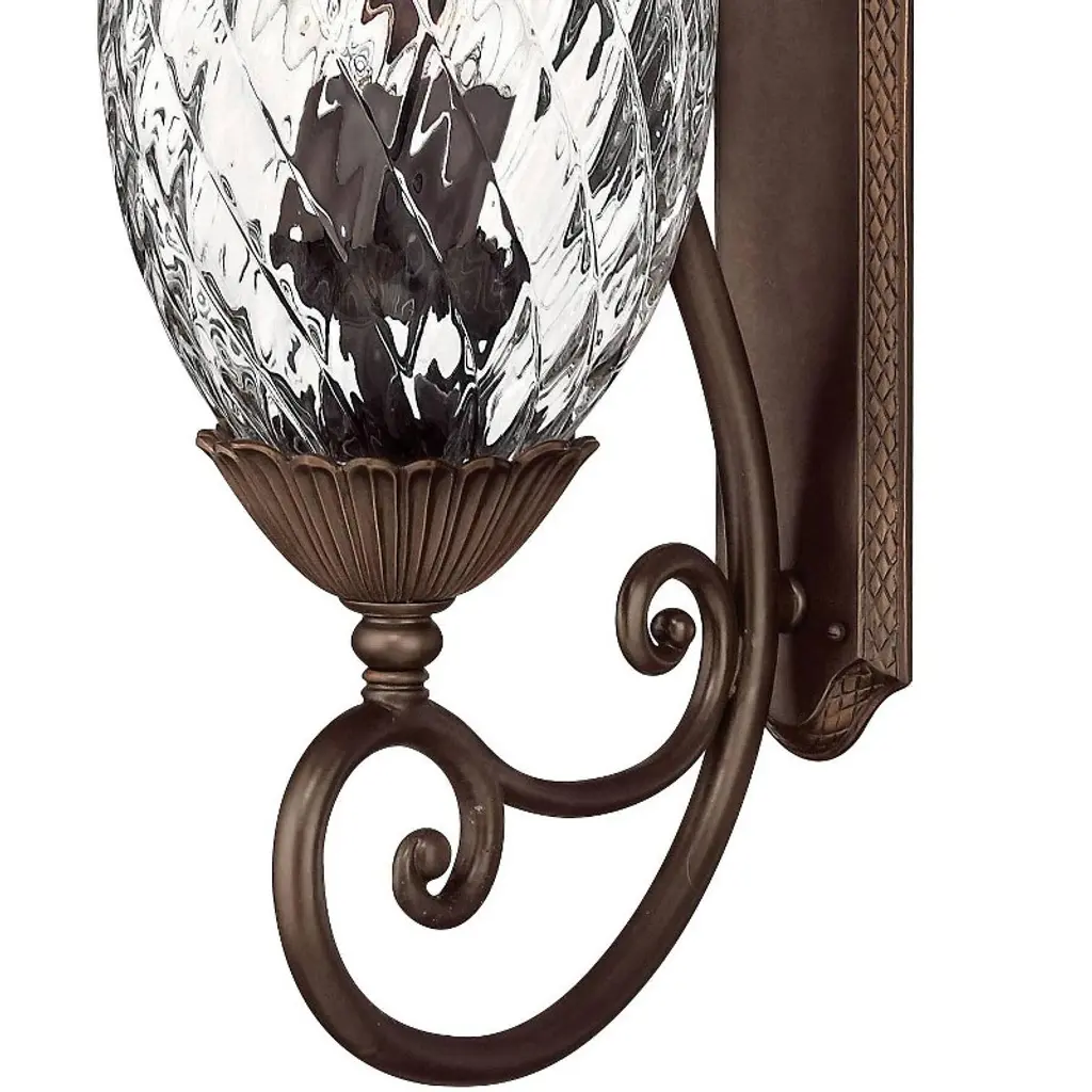 Glowing with a warm, welcoming spirit, this graceful outdoor fixture comes in a pineapple motif in solid brass with a copper bronze finish. It has clear optic hand-blown glass for added sparkle and eye-appeal. From Hinkley's outdoor lighting collection.