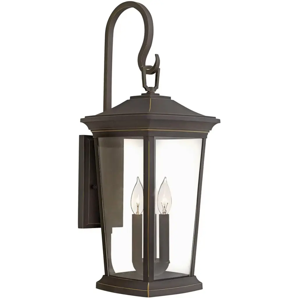Lend a stately profile with this traditional large 2-light outdoor wall light. Featuring aluminum construction with a classic oil rubbed bronze finish, this light boasts a classic silhouette updated for the modern day. Clear glass accents a lantern-inspired look. From the Bromley collection by Hinkley.