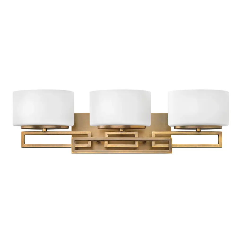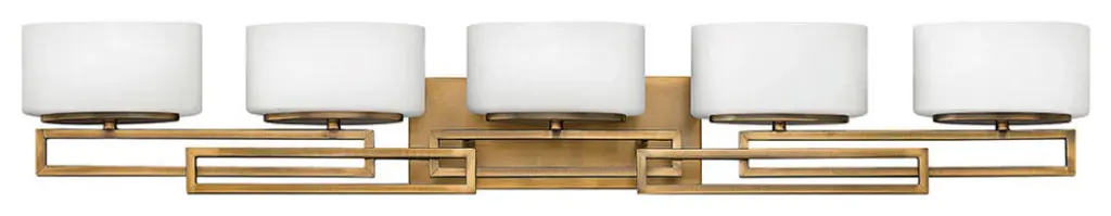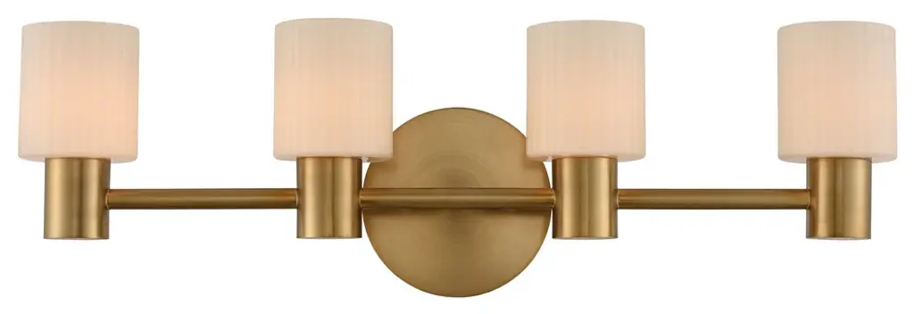 Four Light Bath from Lanza collection in Brushed Bronze finish. Number of Bulbs 4. Max Wattage 60.00 . No bulbs included. Lanza features contemporary styling with geometric patterns that are emphasized in Antique Nickel, Buckeye Bronze, and Brushed Bronze finishes. The elongated oval, etched opal glass reinforces its sleek design. No UL Availability at this time.