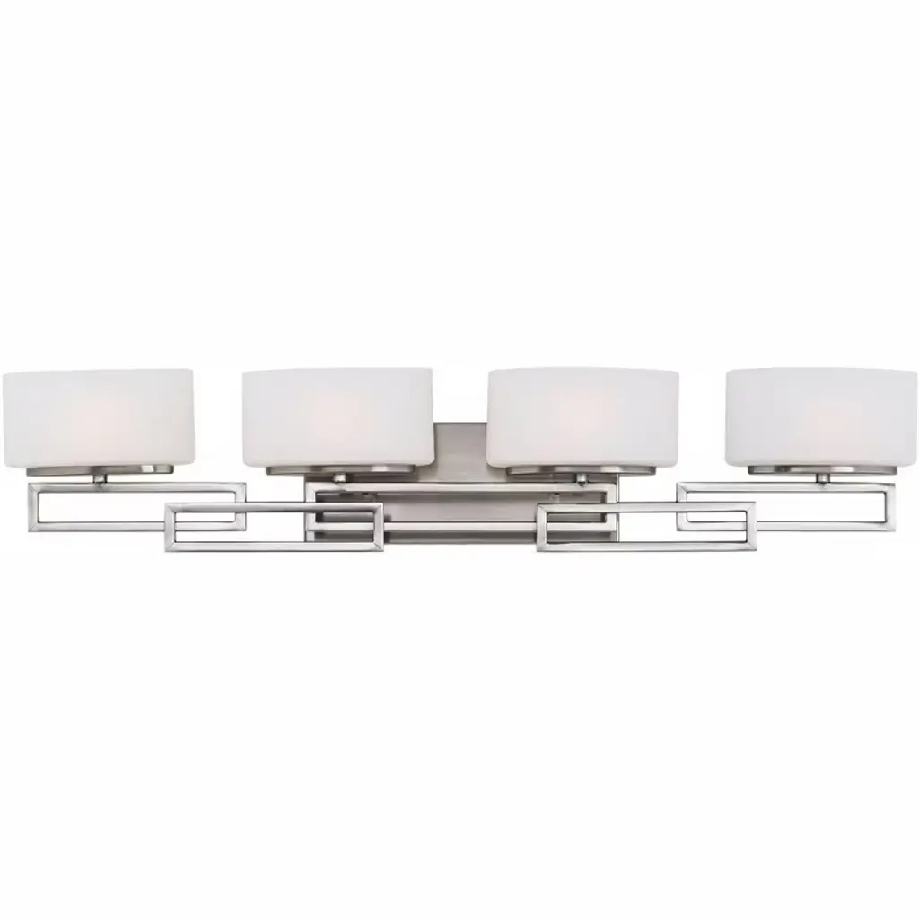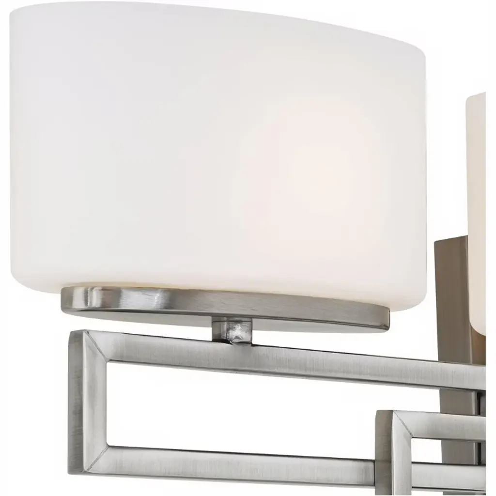 The Lanza collection of interior lighting impresses with sleek, contemporary patterns. The look is linear while oval glass subtly softens the appearance. This bathroom wall light features an antique nickel finish and etched opal glass. Stylish, contemporary lighting from Hinkley.