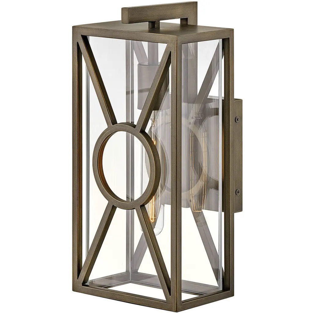 A sleek silhouette lends understated style to this contemporary outdoor wall light. Clear glass panels allow the light to shine brightly over a patio, driveway, or backyard seating area. From the Max collection by Hinkley, a burnished bronze finish brings the design together in a classically elegant style.