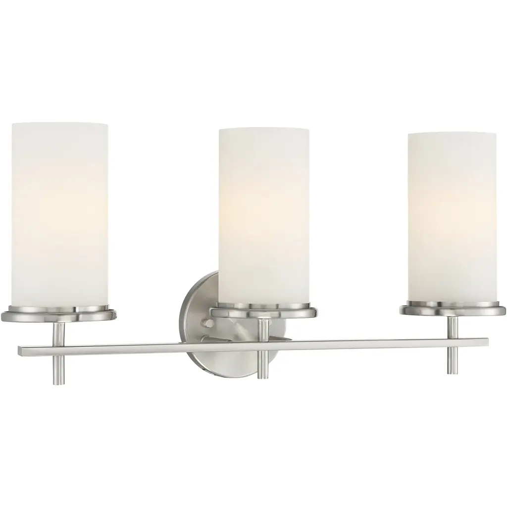 Finished in brushed nickel, this chic bathroom light complements a variety of decors with its sleek lines and smooth styling. Etched opal glass brightens a room with warm, comforting illumination. From the Miley Collection by Hinkley.