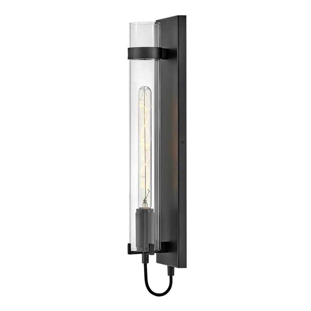 LED Wall Sconce from Ryden collection in Black finish. Number of Bulbs 1. Max Wattage 6.00 . No bulbs included. A versatile stunner, Ryden is the perfect sconce for an array of decors. Its elongated clear glass shade wraps around the lamp, held by heavy cast prongs and a knurled fitter. Available in a Brushed Nickel, Heritage Brass or Black finish, its black fabric cord makes the perfect contrast underneath. Bulbs included. No UL Availability at this time.