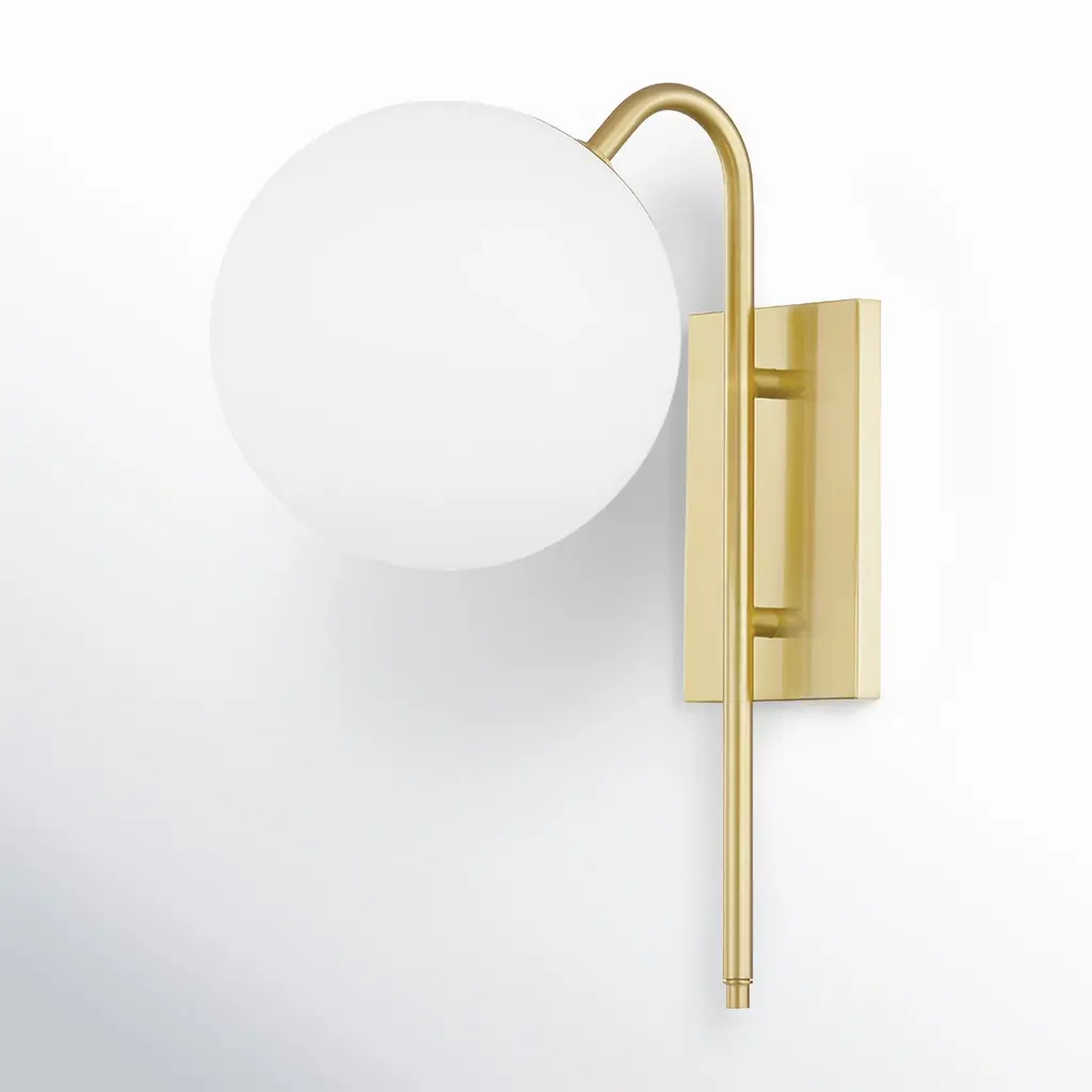 Exhibiting sophistication and confidence, the Hudson Valley Hinsdale Wall Sconce features a handblown orb of light seemingly floating in front of a metallic backplate, as if there is unseen magnetism at work. The glass sphere is finely etched on the inside, while the outside has a glossy sheen. The result is a pleasing diffusion of light, with plenty of surfaces for the light to bounce off of with a sense of playfulness.
