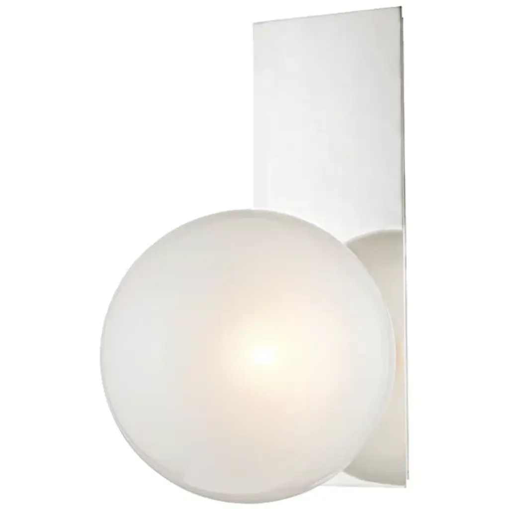 Exhibiting sophistication and confidence, the Hudson Valley Hinsdale Wall Sconce features a handblown orb of light seemingly floating in front of a metallic backplate, as if there is unseen magnetism at work. The glass sphere is finely etched on the inside, while the outside has a glossy sheen. The result is a pleasing diffusion of light, with plenty of surfaces for the light to bounce off of with a sense of playfulness.