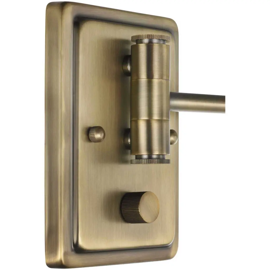 Enjoy focused task lighting with the industrial demeanor of this one-light swing arm wall bracket. A metal shade is ready to provide you with focused task light wherever illumination is called upon. The light fixture's signature adjustable arm is coated in a vintage brass finish and makes this wall light a favorite choice for when you want to read your favorite novel before bed.