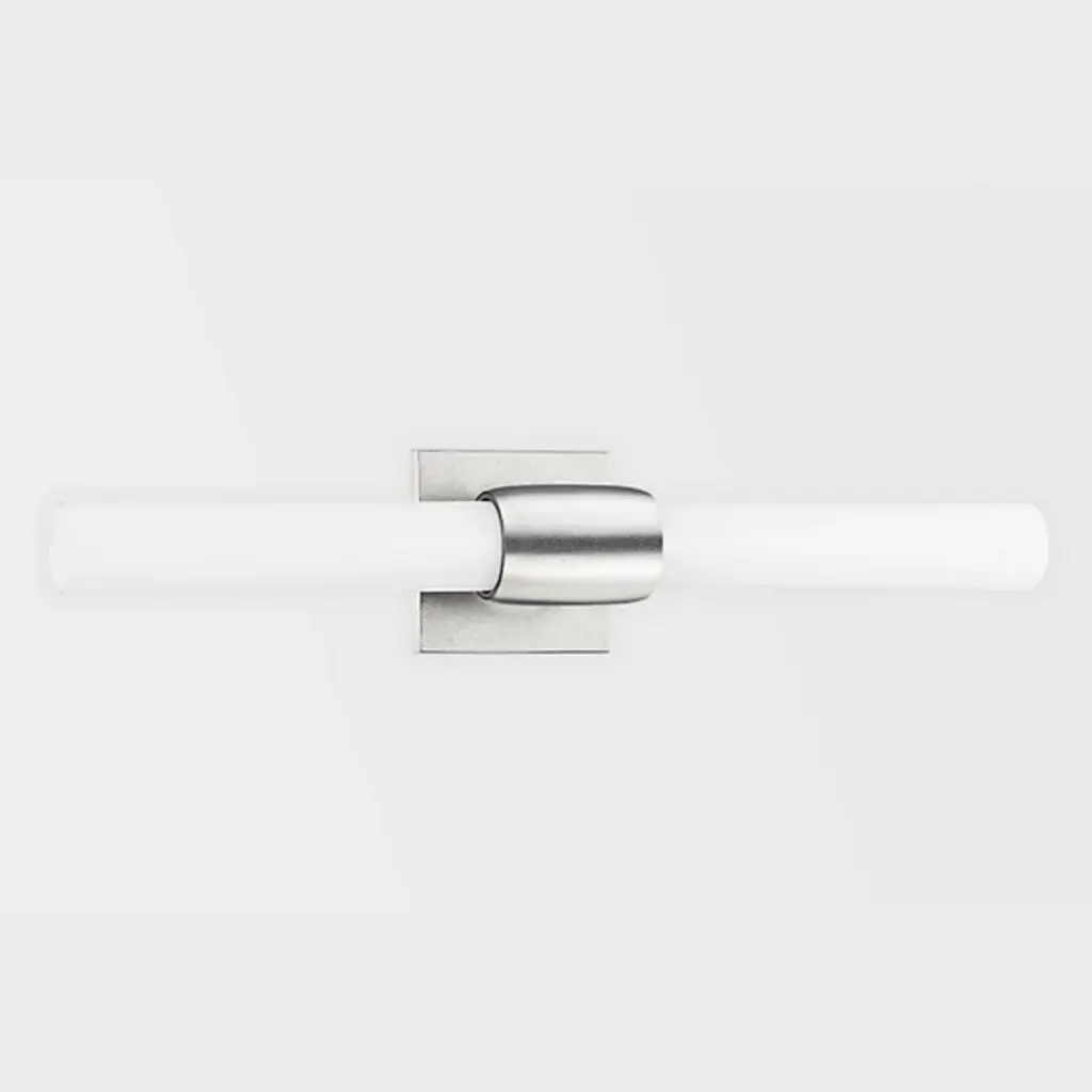 The Hogan 2-Light Wall Sconce by Hudson Valley Lighting is all about straightforward design with a minimalist vibe. Crafted from Cast Metal, the design features a square wall plate with a rounded arm and socket holder with a pitted texture for visual interest. Opal Glossy Glass tube shades cover the included energy-efficient light bulbs for warm ambient lighting. Perfect in pairs, the Hogan mounts horizontally or vertically to dress up and brighten a foyer, hallway, dining room or living room.