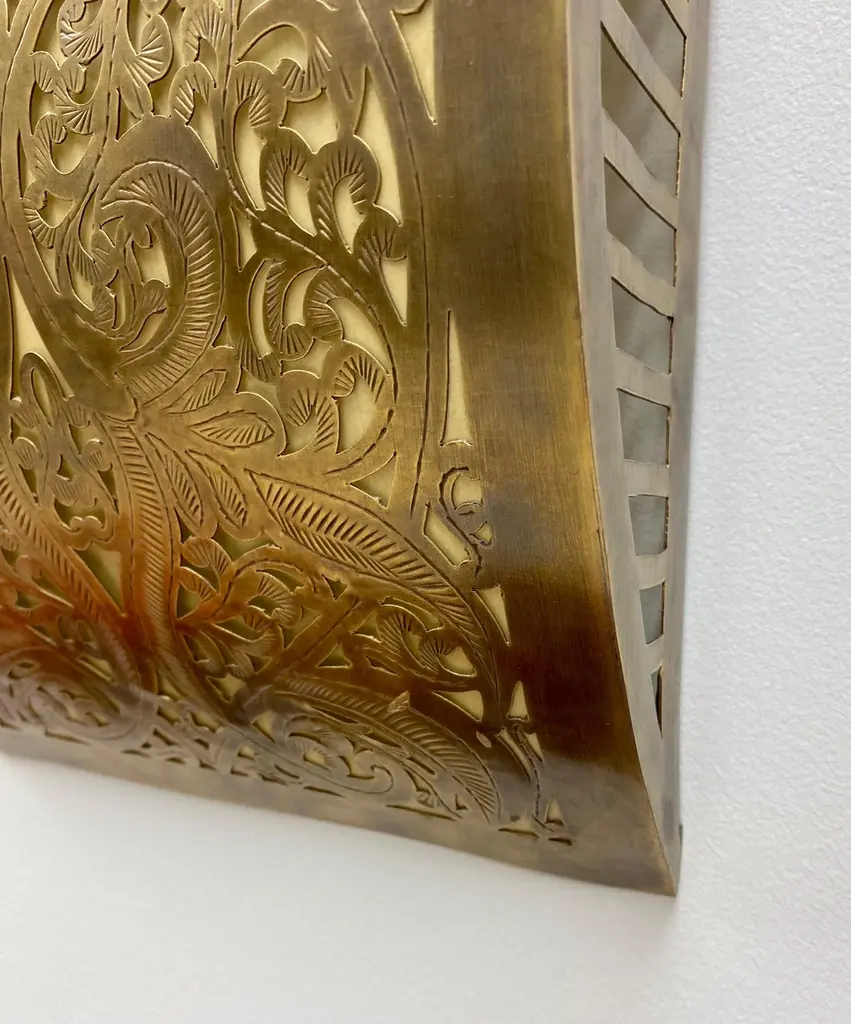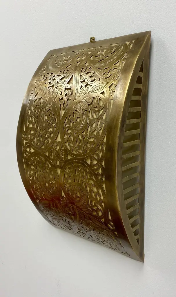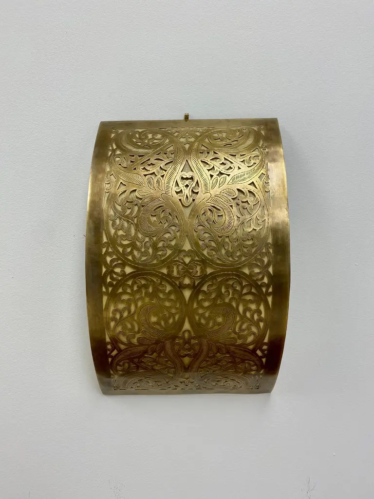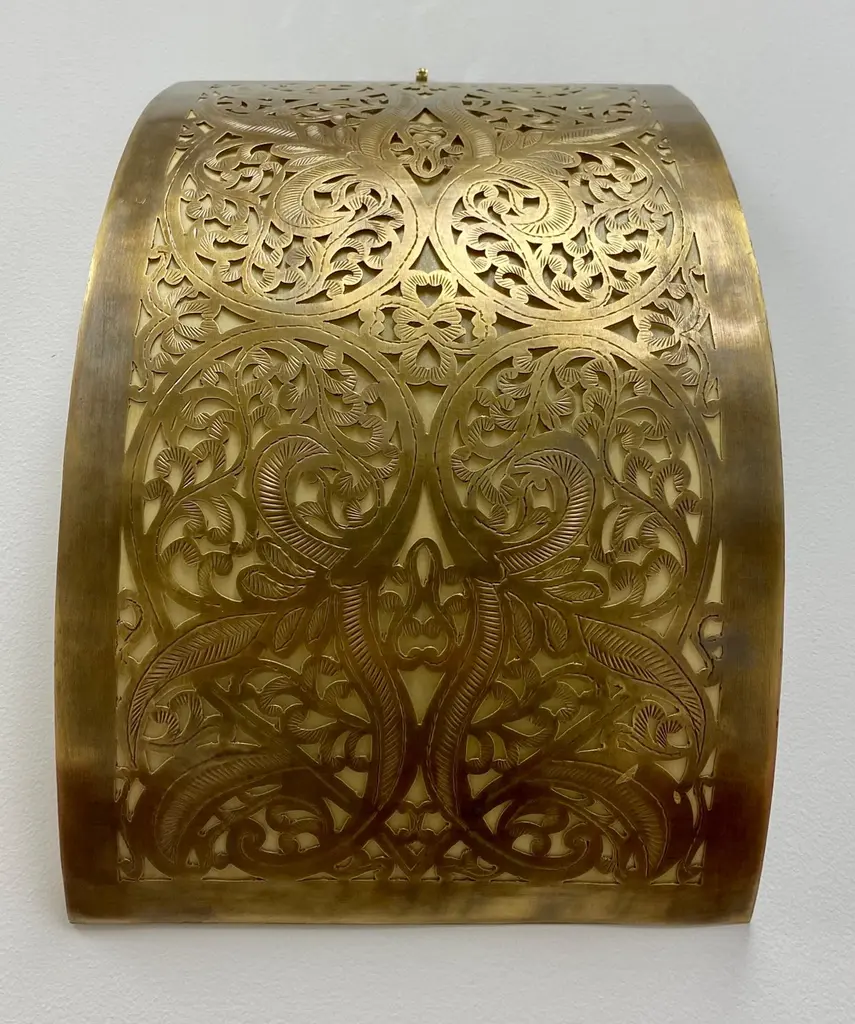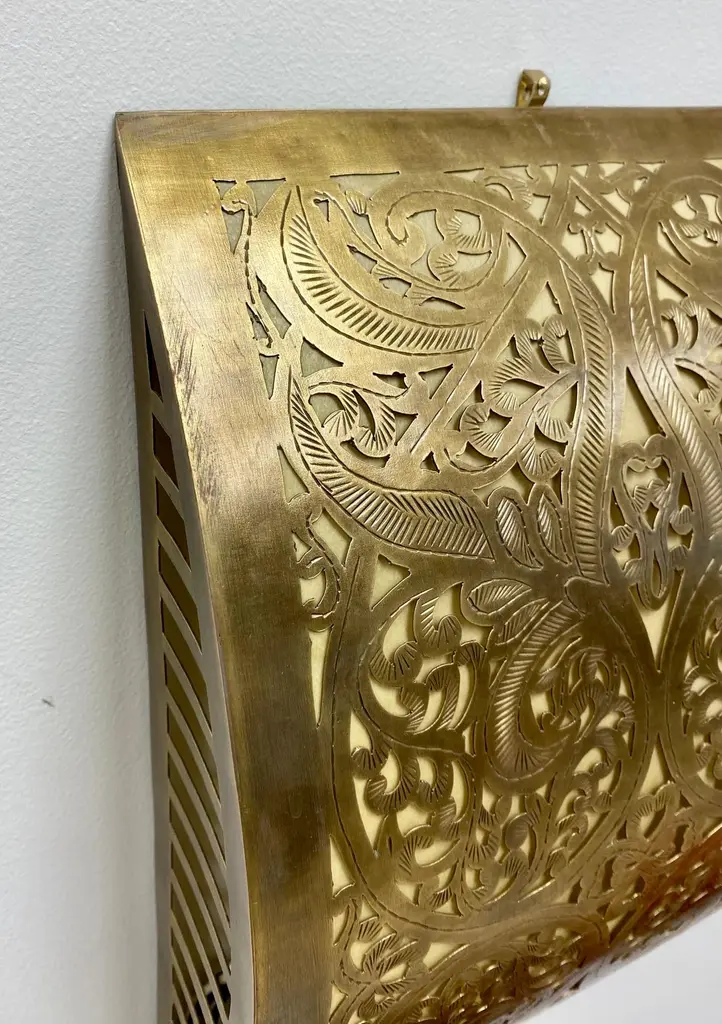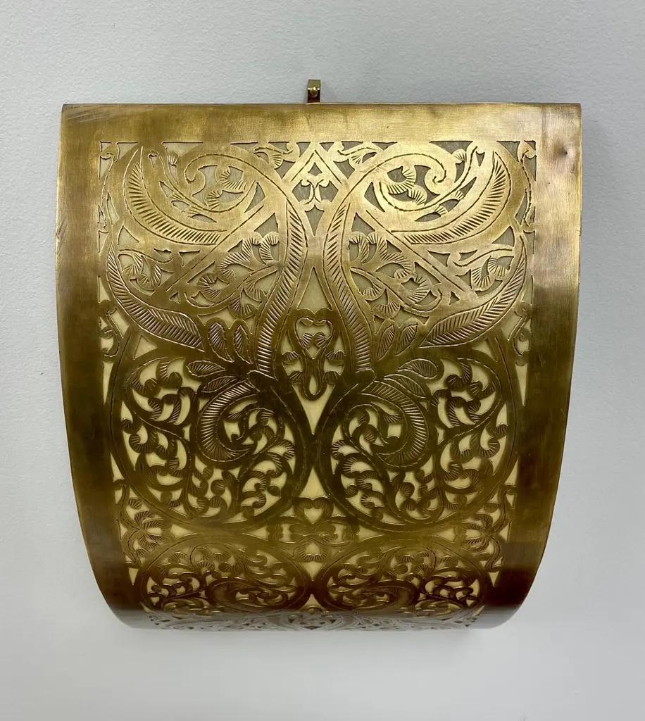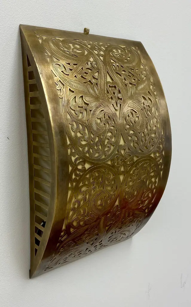 Hollywood Regency Style Brass Filigree Design Wall Sconce, A Pair