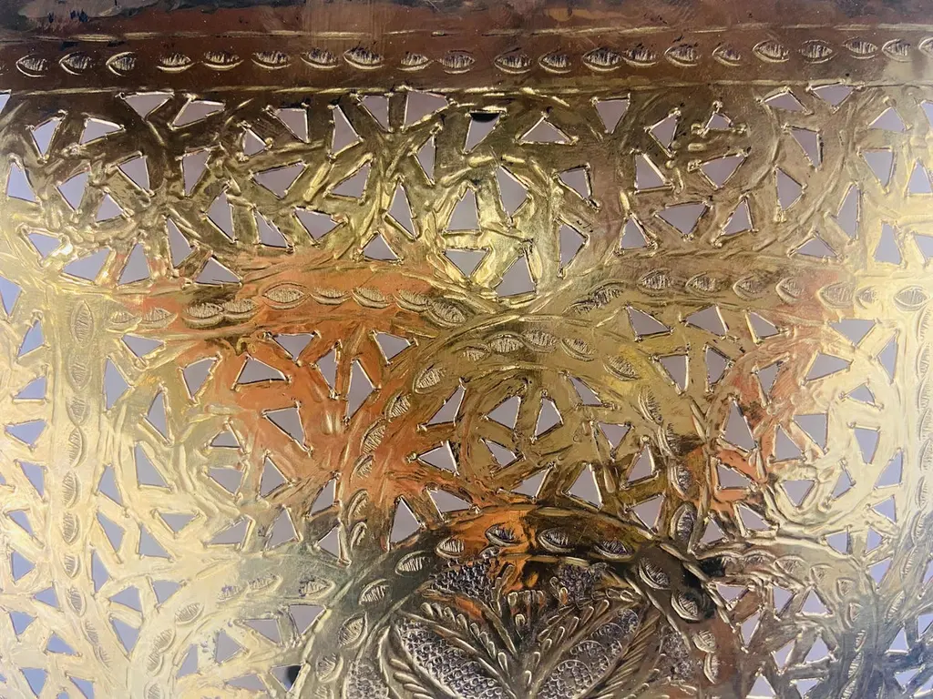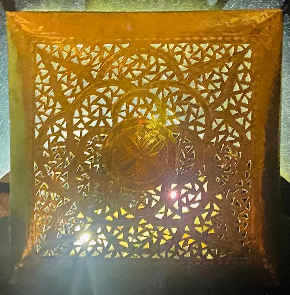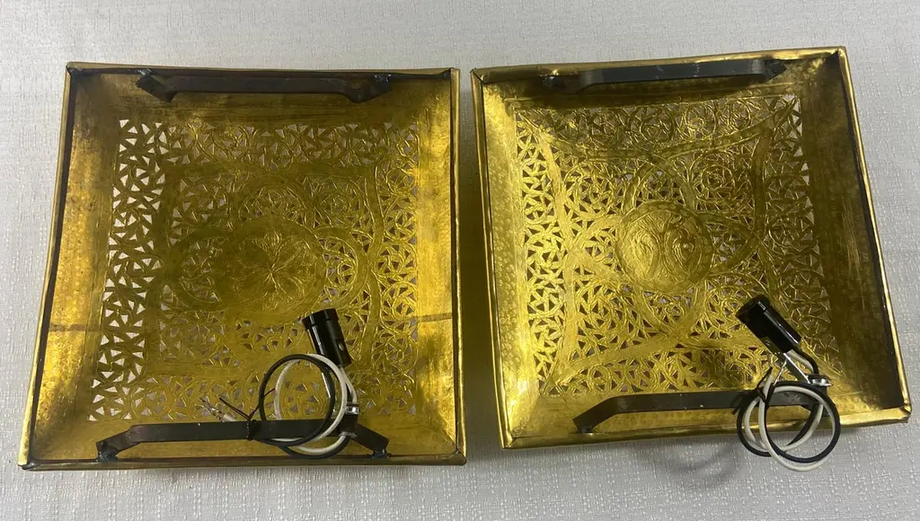 Hollywood Regency Style Brass Square Filigree Design Wall Sconce, A Pair