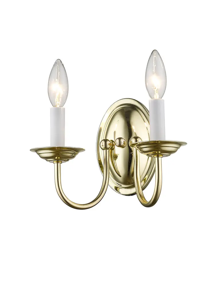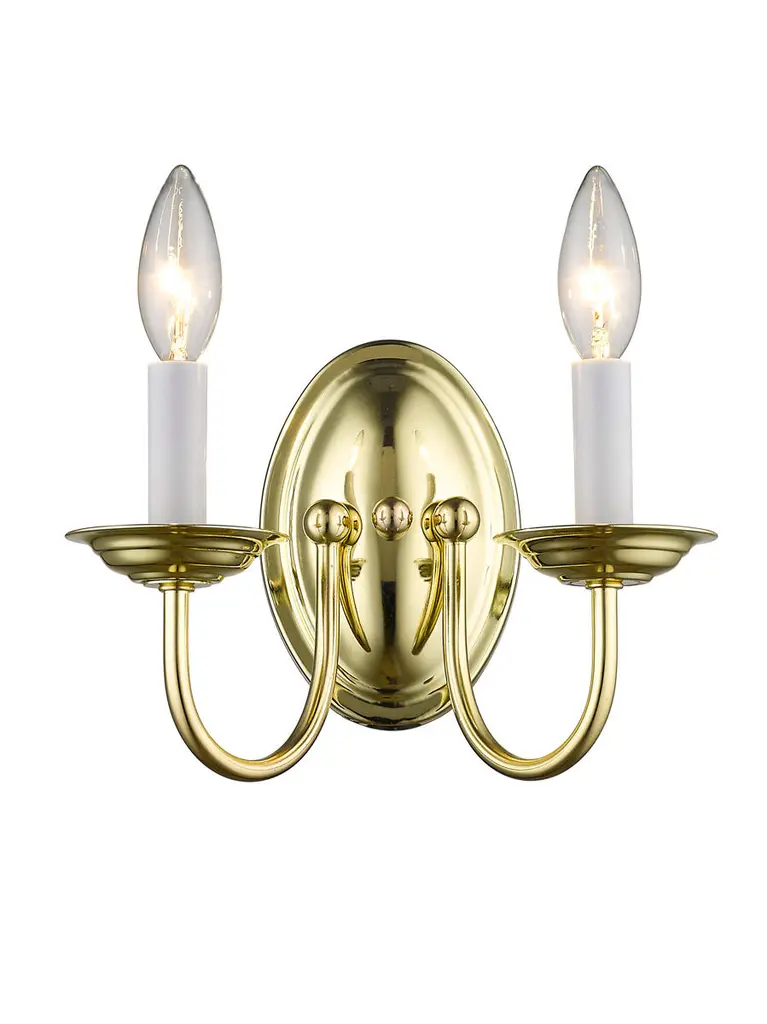 Home Basics 2 Light 10 Inch Polished Brass Wall Sconce Wall Light