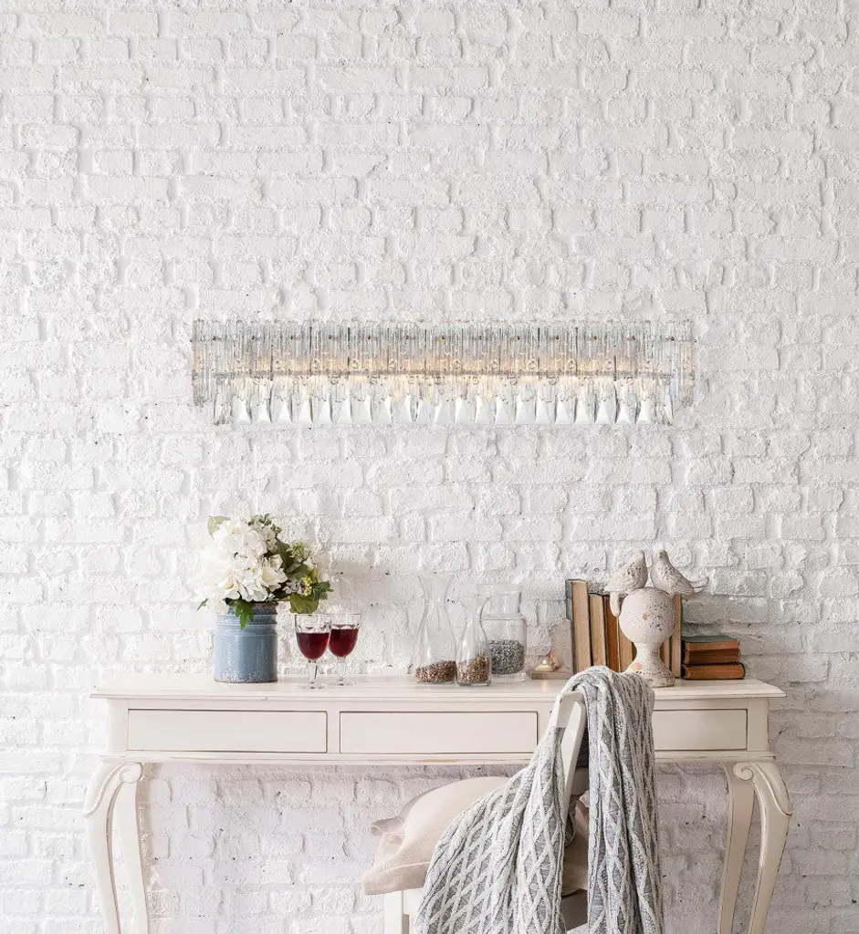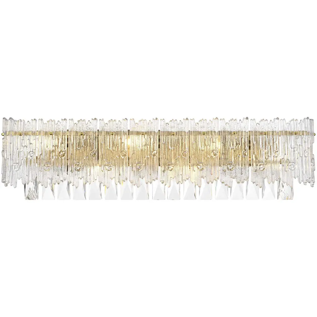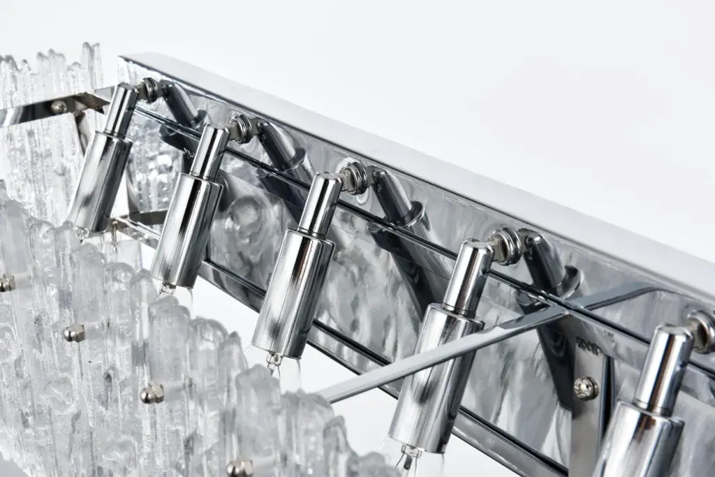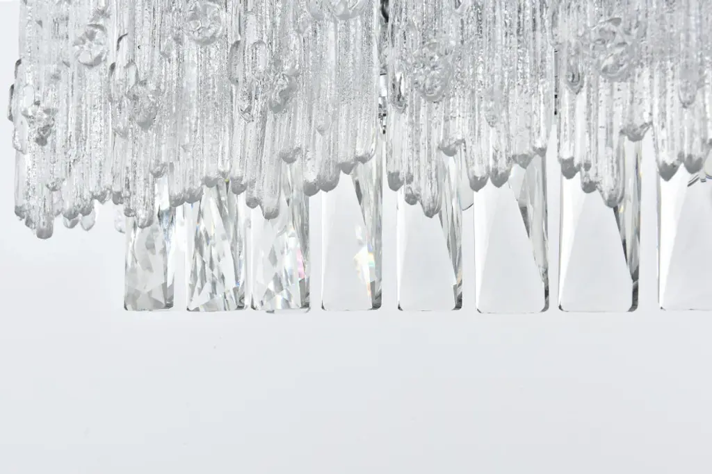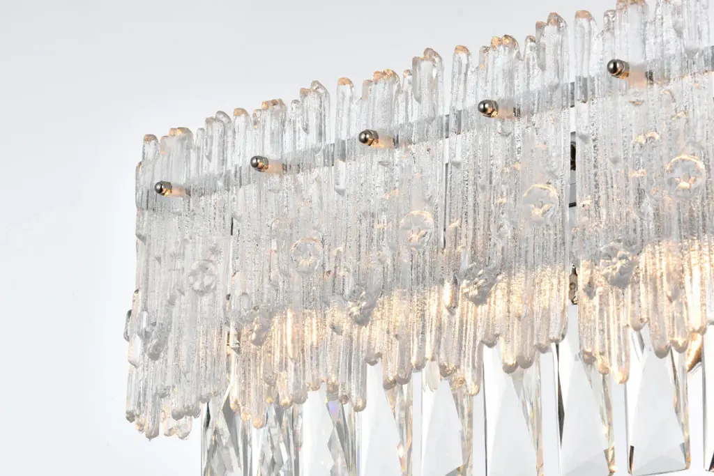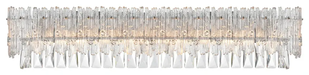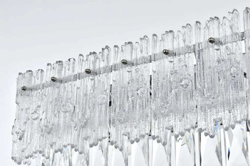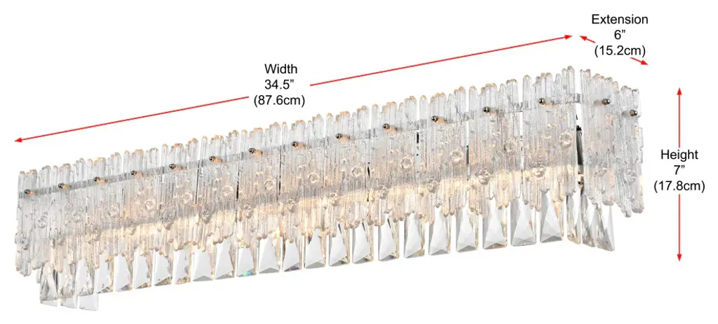 Elevate your home''s ambiance with the lavish elegance of this indoor lighting fixture, designed to captivate and transform any room. Featuring a stunning array of precision-cut clear crystals, each faceted to perfection, this fixture sparkles with a brilliant display of light. Textured glass accents further enhance its beauty, casting a warm, radiant glow. Available in chrome or satin gold finishes, this piece embodies luxury and modern sophistication. Complete your home''s look with matching chandeliers, wall sconces, and flush mounts for a cohesive and refined lighting design throughout your space.Features multiple tiers of high-quality crystal prisms that create a captivating display of light and sparkle.Incorporates finely textured glass elements that add depth and a unique tactile quality, enhancing the lighting''s visual appeal.The combination of clear crystals and textured glass creates a sophisticated light play, perfect for setting an elegant mood.Features high-grade, clear crystals with precise faceting that enhance light reflection, creating a captivating sparkle.Ideal for dining rooms, living rooms, foyers, and bedrooms, enhancing the ambiance of any room.Designed with a dimmable feature, this lighting fixture enables you to personalize and fine-tune the illumination according to your preferences.Part of a coordinated collection with matching wall chandeliers and flush mounts, allowing for a seamless look throughout your home.Available in chrome and satin gold finishes, catering to a range of interior styles from contemporary to classic.