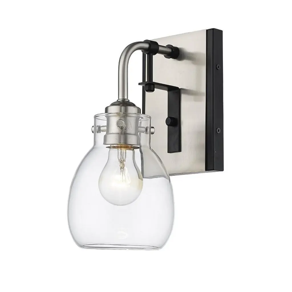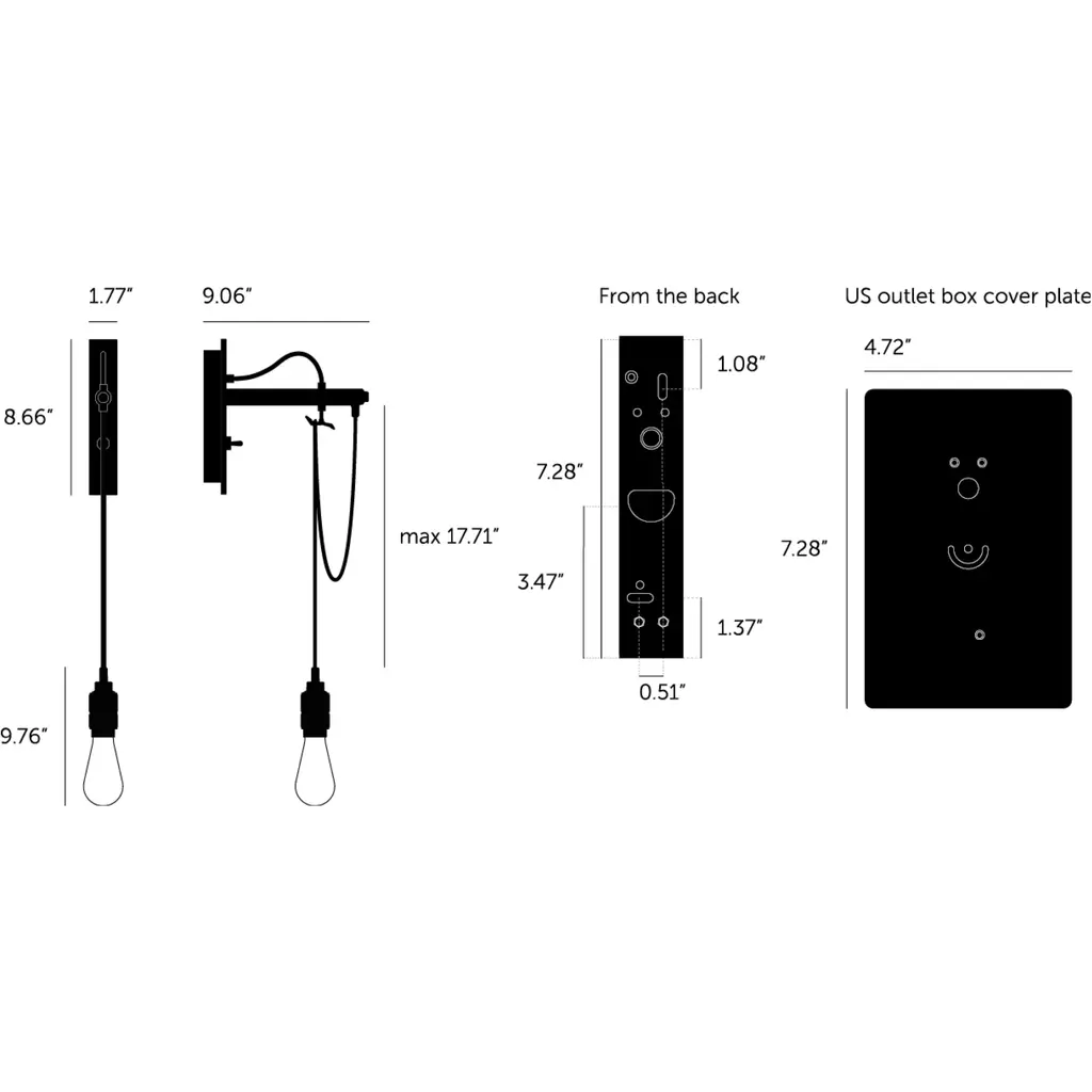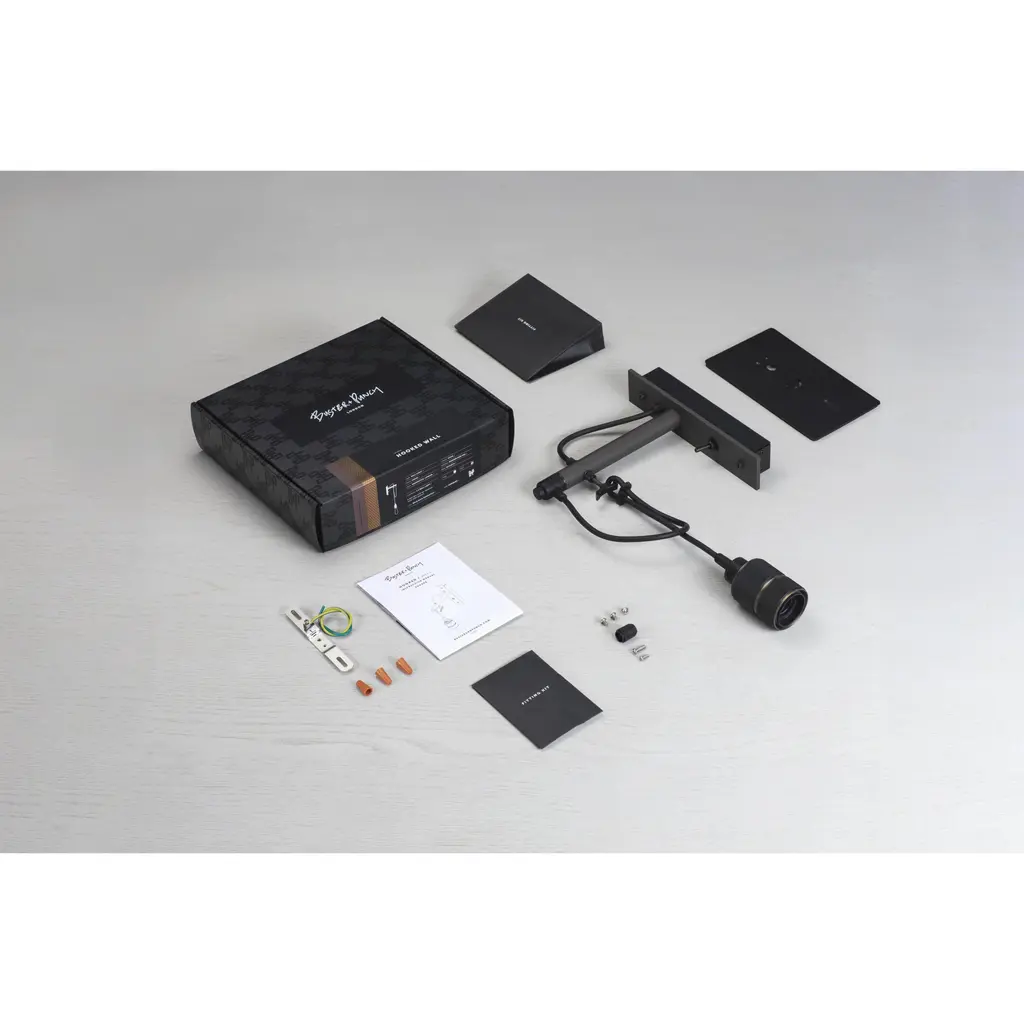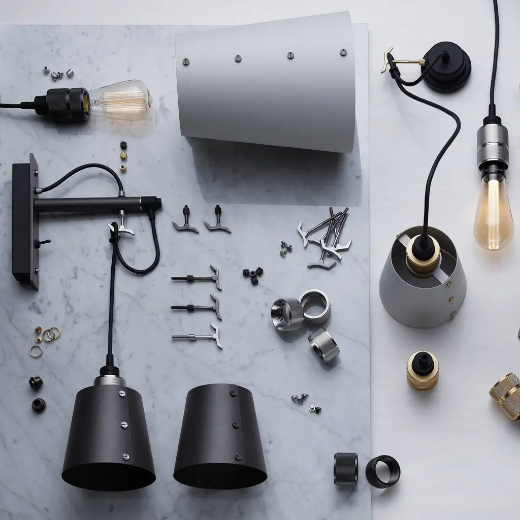 A wall light made from graphite powder coated metal with solid steel, brass or smoked bronze detailing.
