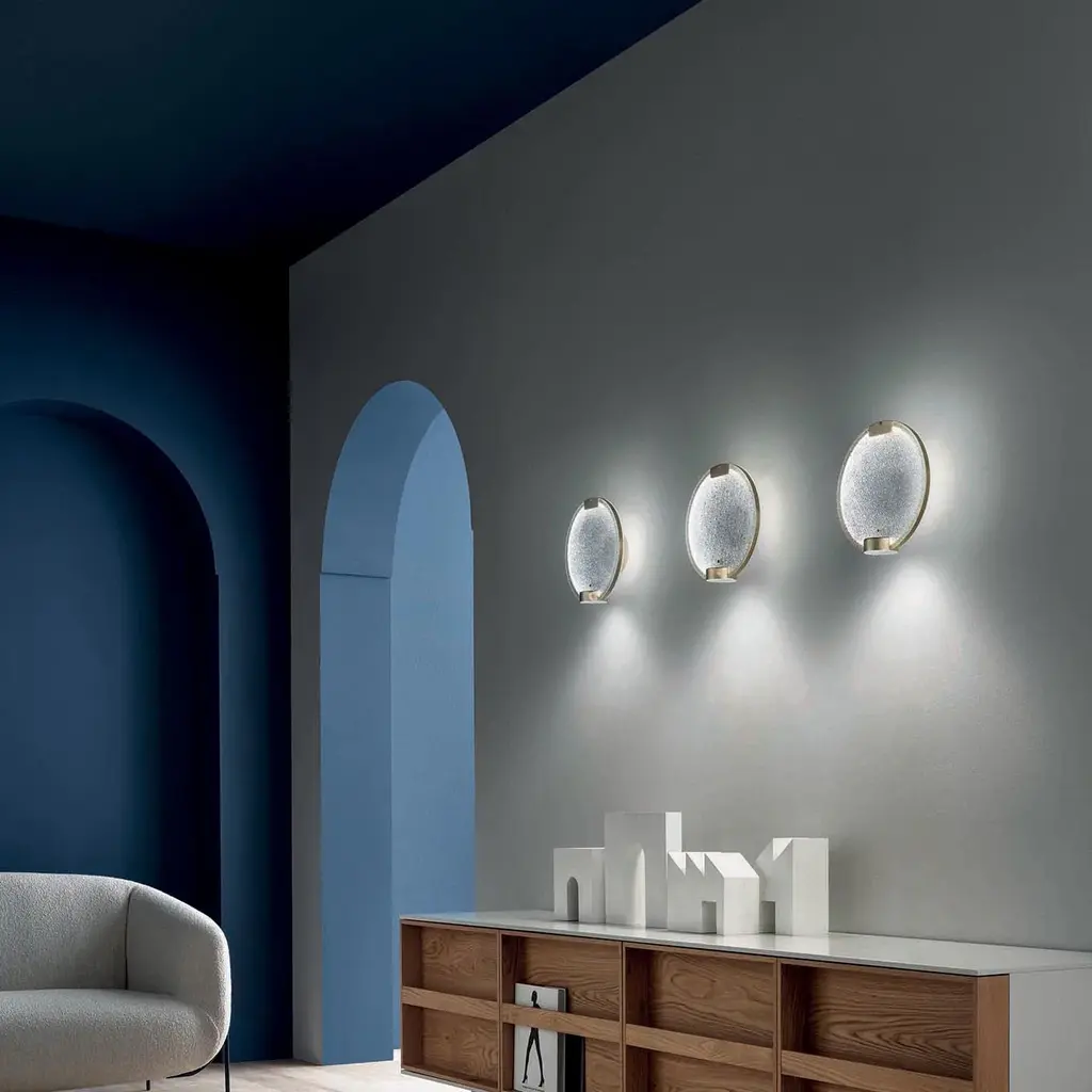 Add a touch of luxury to your walls with the Horo LED Wall Sconce from Masiero. An exemplary design from Italian master Pierre Gonalons, this fixture features a circular wall mount supporting a vertical metal ring structure with LED lamping and a prism glass diffuser shade to create a warm, inviting atmosphere. Elevate your interior with this exquisite piece of functional art. Highlights