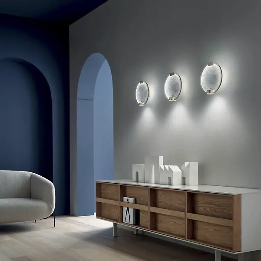 Make a stylish statement on your interior walls with the Horo LED Wall Sconce from Masiero. An understated Italian design from the mind of Pierre Gonalons, it uses a circular wall mount to anchor a vertical metal ring structure holding LED lamping on its inside. A vertical opening at the ring’s base secures a diffuser shade made of prism glass in the ring’s interior, scattering a pleasing ambiance and backlight around the fixture.