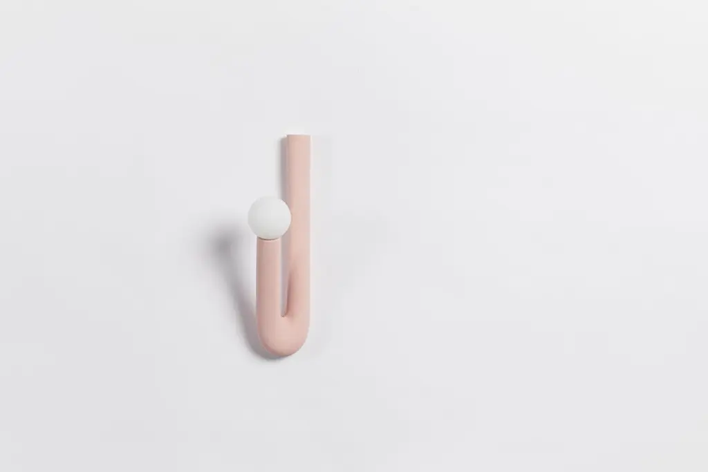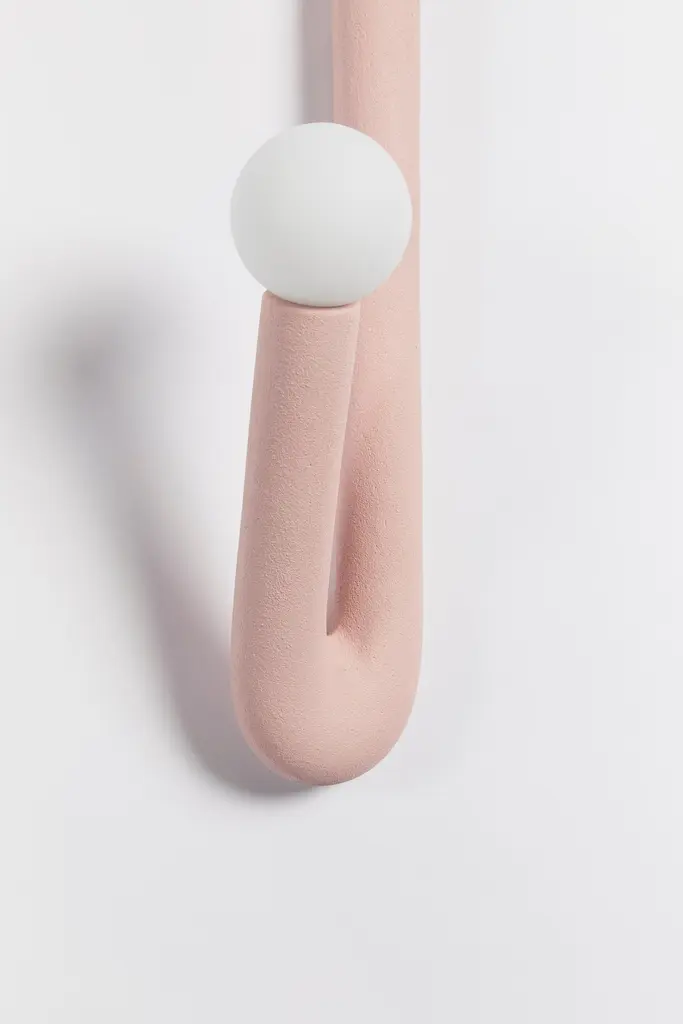 Hotel Light 02 Limited Edition Sand and Nylon Wall Light by Hot Wire ExtensionsLimited editionMaterials: Waste SLS 3D nylon powder, Sand from sustainable sourcesDimensions: L 14.5 x W 17.5 x H 47 cm Colour: pinkAlso available in: aqua, cream, lemon, anthracite and greyAll our lamps can be wired according to each country. If sold to the USA it will be wired for the USA for instance.Hot Wire Extensions is a young sustainable design brand, presenting a bold innovative manufacturing process.Exploration is central to our philosophy and the Hot Wire Extensions process is conceivedwith this in mind. Using waste SLS 3D nylon powder, a material that is currently not recycled, and inspired by the way a vine grows around a tree, we reuse the material to create organic bone-like structures builtaround a wire.We design and develop a diverse range of products, furniture and installations as well as bespoke commissions all characterised by our dedication to the mindful exploration ofnew material landscapes.