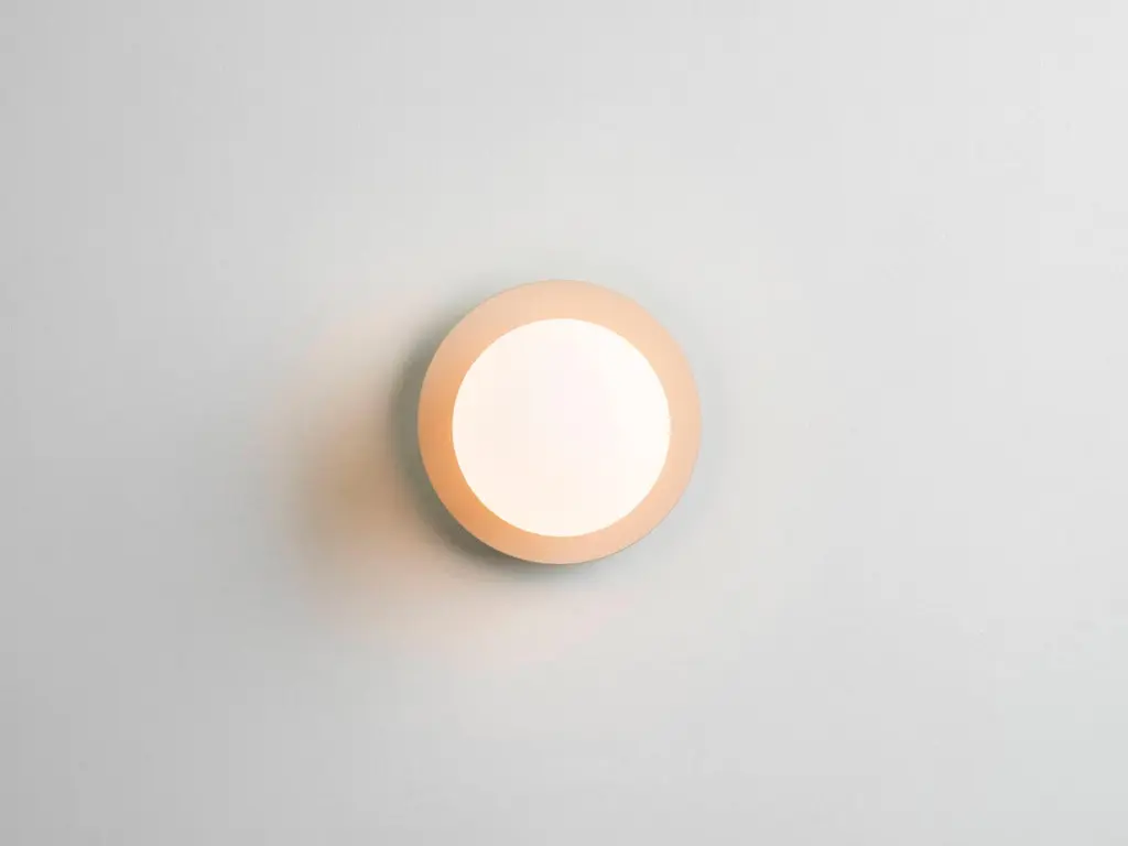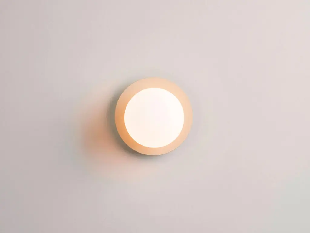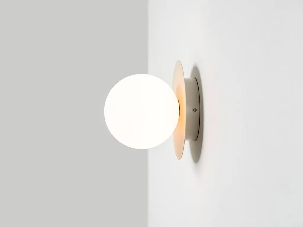 This modern wall light works everywhere. The disk mounted, opal glass shade, diffuses a warm illuminating glow. Ideal for a living space, kitchen, bedroom or bathroom. Or sand is the houseof staple that accentuates and emphasises. The soft block tone and matt finish offers clean contrast to the opal glass shade. 2 Years guarantee.Great lighting is about so much more than just illuminating a room. it should elevate a space, even during daylight hours. Our colourful designer lighting range has been designed "function first", offering covetable, unique lights and lamps in exclusive houseof designs and (of course) in statement houseof colours.Additional information:Material: Metal with glass shadeColour: Sand with opal shadeProduction emissions: 1.342kg (carbon)Usage emissions: 18.065kg (carbon)Height: 16cmWidth: 15cmLength: 16cmShade: 12cm x 12cmRose: 10cm x 10cmWeight: 0.5kgAdjustable: NoSpread of light: AmbientDimmable: YesFixture type: 240v (hardwired)Assembly required: YesIP rating: IP20Bulb included: NoBulbs required: 1Bulb fitting: G9 bulbDimmable: YesEnergy rating: A++Wattage (max): 28wRecommended bulb: 3w LEDPantone: 19-4104 TPXDimension: Ø 16 x 16 H cmAvailable in other colour option: Brass, CharcoalCare: Remove light from fitting and wipe carefully with a clean, soft, dry cloth.Lead time for UK orders 2 - 5 working days Lead time for US orders 3 - 7 working days.