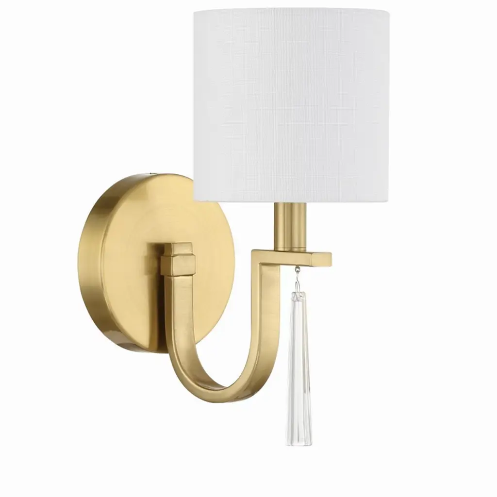 One Light Wall Sconce from Birch collection in Aged Brass finish. Number of Bulbs 1. Max Wattage 60.00. No bulbs included. Due to the refractory nature of Birch`s faceted crystal tail, its light splashes along the wall in a captivating array of shadow and illumination. No UL Availability at this time.