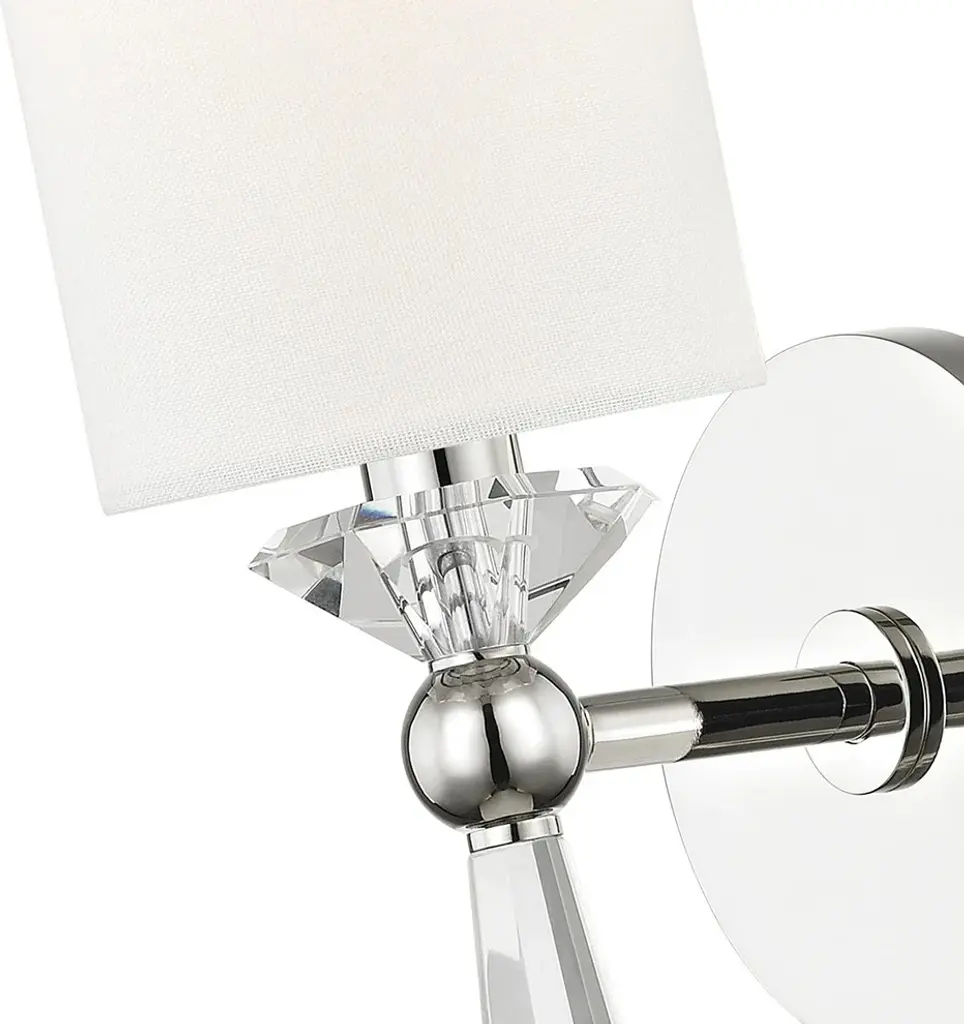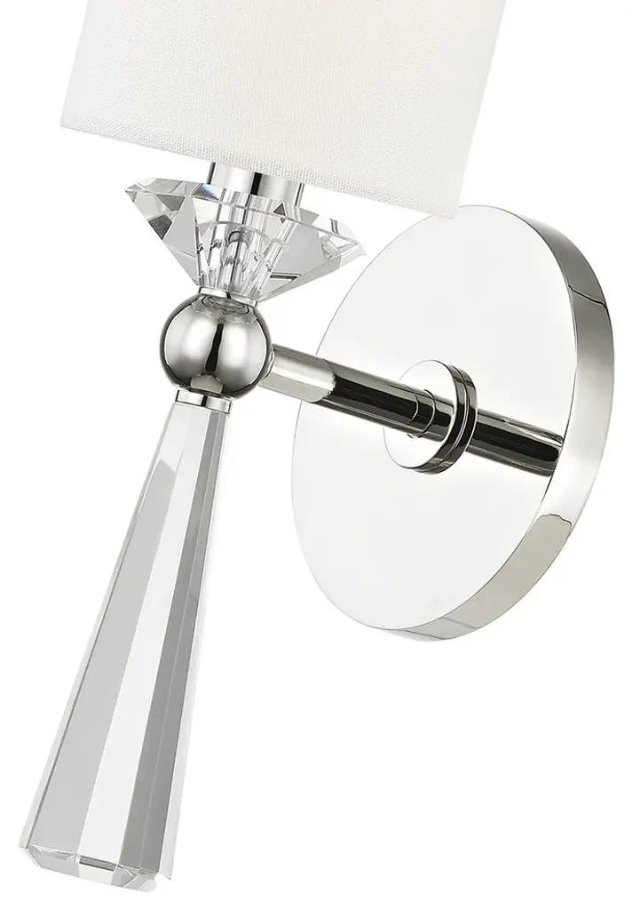 One Light Wall Sconce from Birch collection in Polished Nickel finish. Number of Bulbs 1. Max Wattage 60.00. No bulbs included. Due to the refractory nature of Birch`s faceted crystal tail, its light splashes along the wall in a captivating array of shadow and illumination. No UL Availability at this time.