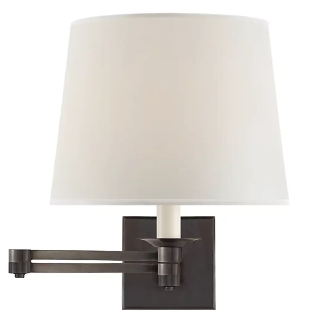 One Light Wall Sconce from Fairport collection in Old Bronze finish. Number of Bulbs 1. Max Wattage 60.00. No bulbs included. Sleek and minimalist on the outside, Fairport conceals a few splendid surprises. Look to grasp the sconce`s full-range dimmer switch and notice the smart textural contrast of the shade`s softly gathered inside pleats. Plus, a gentle swing-arm makes Fairport an ideal bedside reading lamp. No UL Availability at this time.