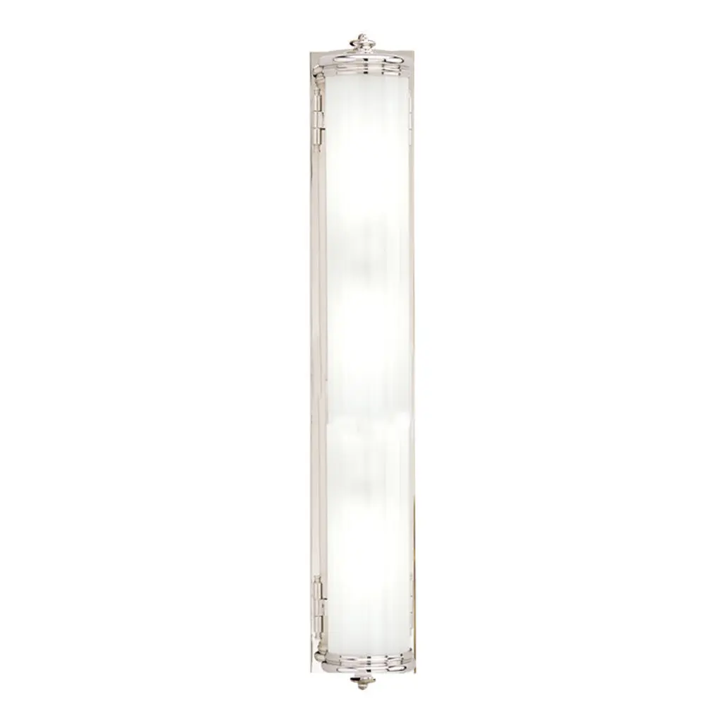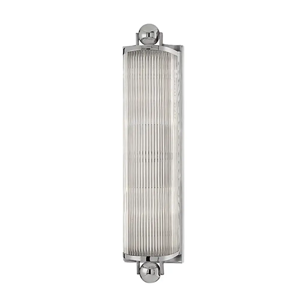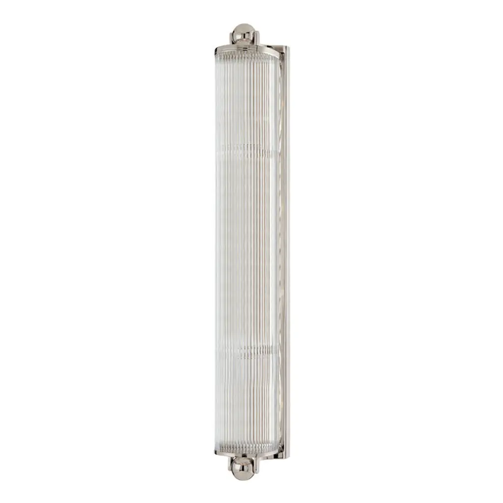 Four Light Bath Bracket from Mclean collection in Polished Nickel finish. Number of Bulbs 4. Max Wattage 60.00 . No bulbs included. Thin, tight ribbing refracts bright columns of light across McLean`s glossy glass shade. Clear glass rods conceal the bulbs within, while preserving the fixture`s pristine appearance. Ball finials complete the rod sconce`s refined Art Deco styling. McLean can be mounted horizontally or vertically, giving you the flexibility to pair this classy look with a variety of vanity configurations. No UL Availability at this time.