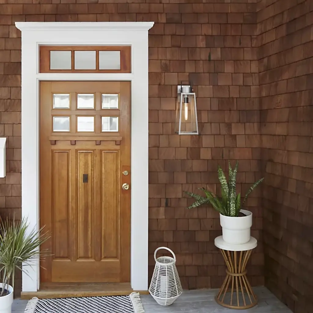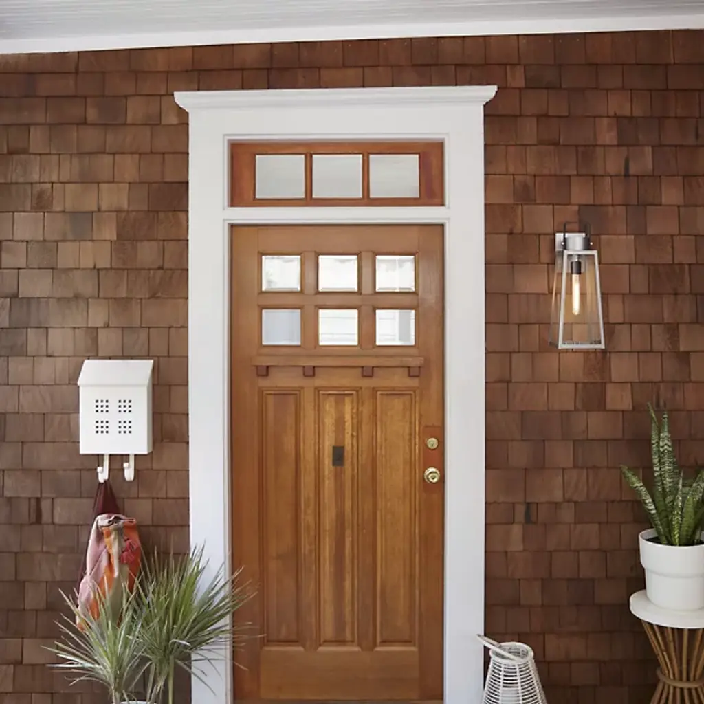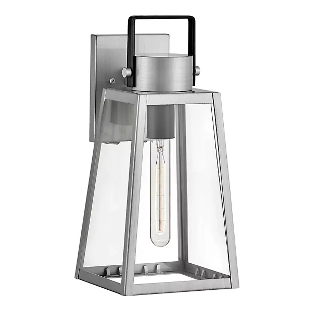 There’s no better way to be greeted at the front door than by a pleasant smile and the warm, inviting light of the High Outdoor Wall Sconce from Lark. The piece sets a comfortable mood by sharpening up the classic lantern silhouette. It features the familiar lantern's tapered form and charming hood accent. The faceted form lets one admire the beautiful lamping inside with the help of crisp glass panels. These panels add a seductive shine while protecting the light source. A flip of the switch glazes the wall with a warm hue while sending an ambient glow toward arriving guests.