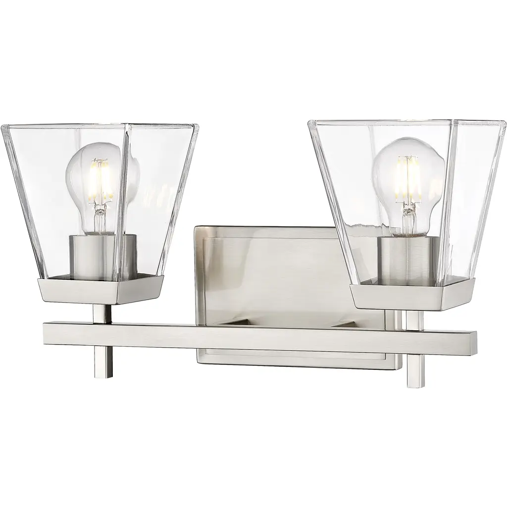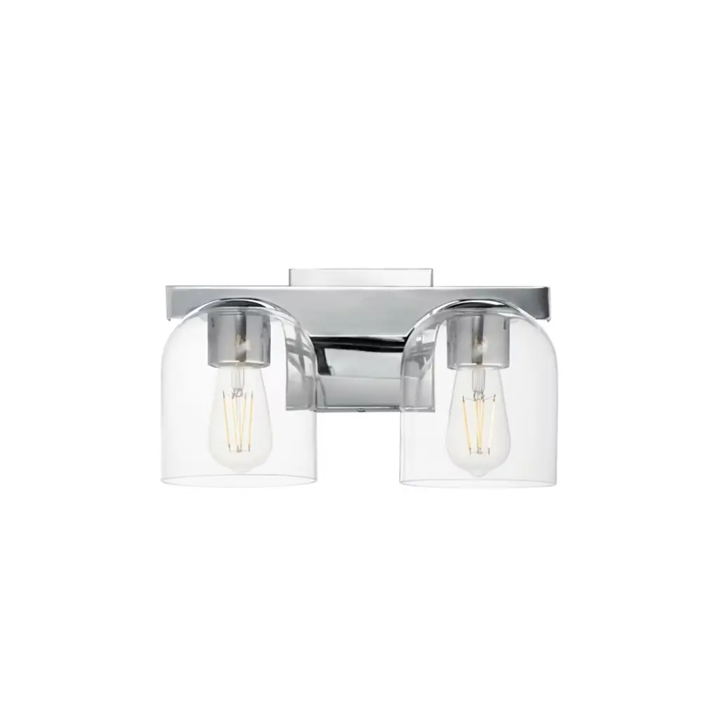 Ideal for bathrooms, the Kerrison vanity pairs a sleek, simple design with a gentle warming glow. Light reflects softly through the fixture�s clear seeded glass, while the Kerrison�s understated geometry serves to complement your existing aesthetic. Clean lines and a smooth finish make the vanity the perfect pairing for any damp-rated area. Mix and match with other fixtures from this collection or from our ceiling fan designs.. Rated for indoor spaces exposed to humidity. Requires 2 E26 bulbs. Bulbs not included.. INDOOR-DAMP RATED: For use in indoor spaces exposed to humidity like bathrooms and laundry rooms.. BULB RECOMMENDATION: Maximum 60 W per light bulb or equivalent LED bulb. Bulbs not included.. PICTURED HERE: Match our image using A19 Standard light bulbs.. WARRANTY: One-year limited warranty backed by the trusted experts at Hunter.,