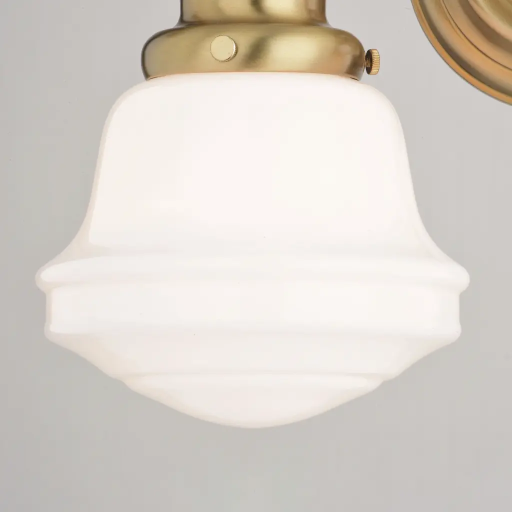 The Huntley is a timeless collection inspired by mid-century small-town aesthetics. The vintage schoolhouse white milk glass is the focal point of this design with its unique profile. Offered in multiple classic finishes and glass options, this versatile farmhouse light provides a unique accent to a variety of kitchen, dining, and bathroom settings. Coordinating pieces available to complete your look.