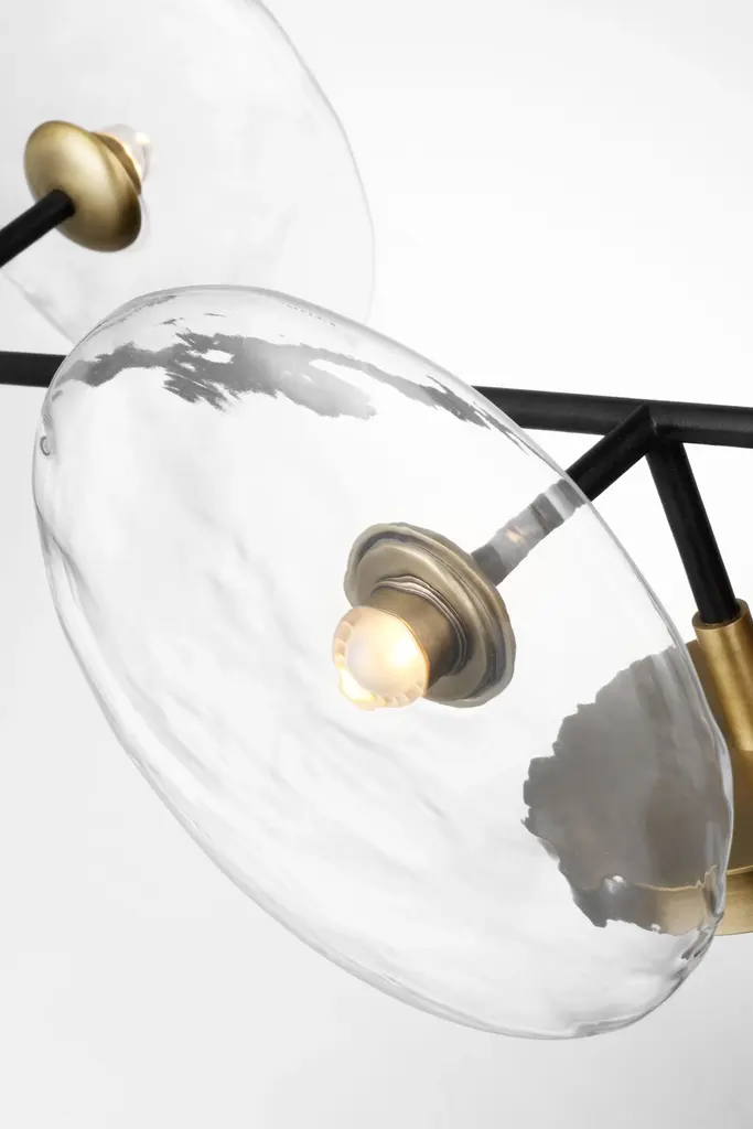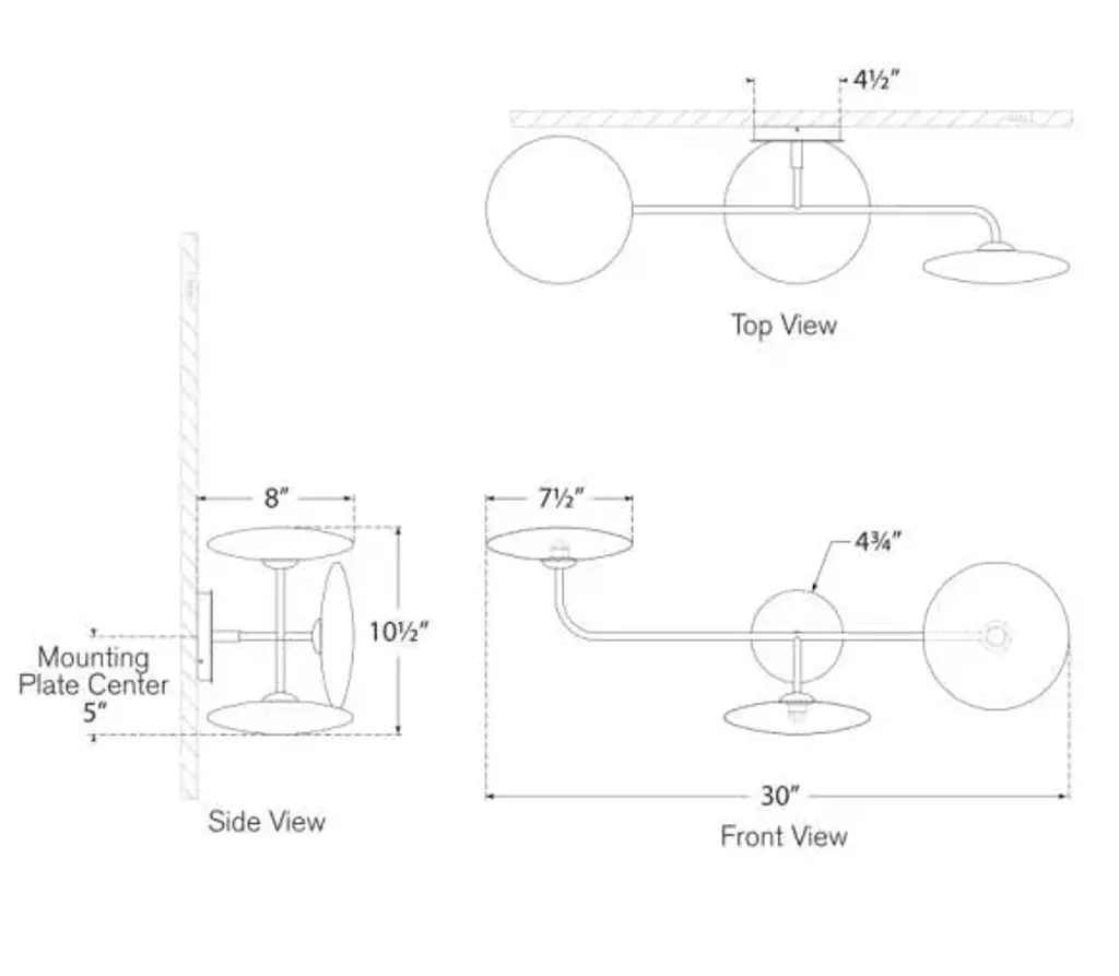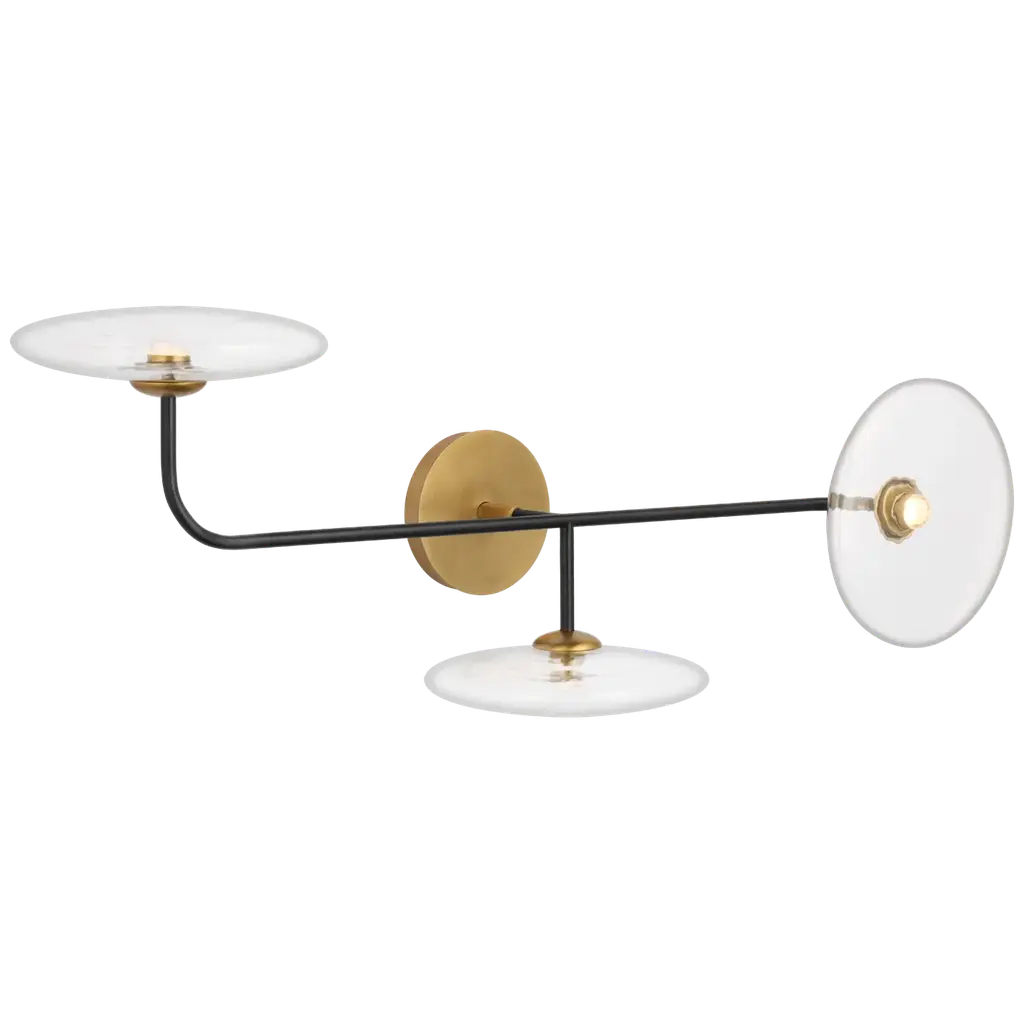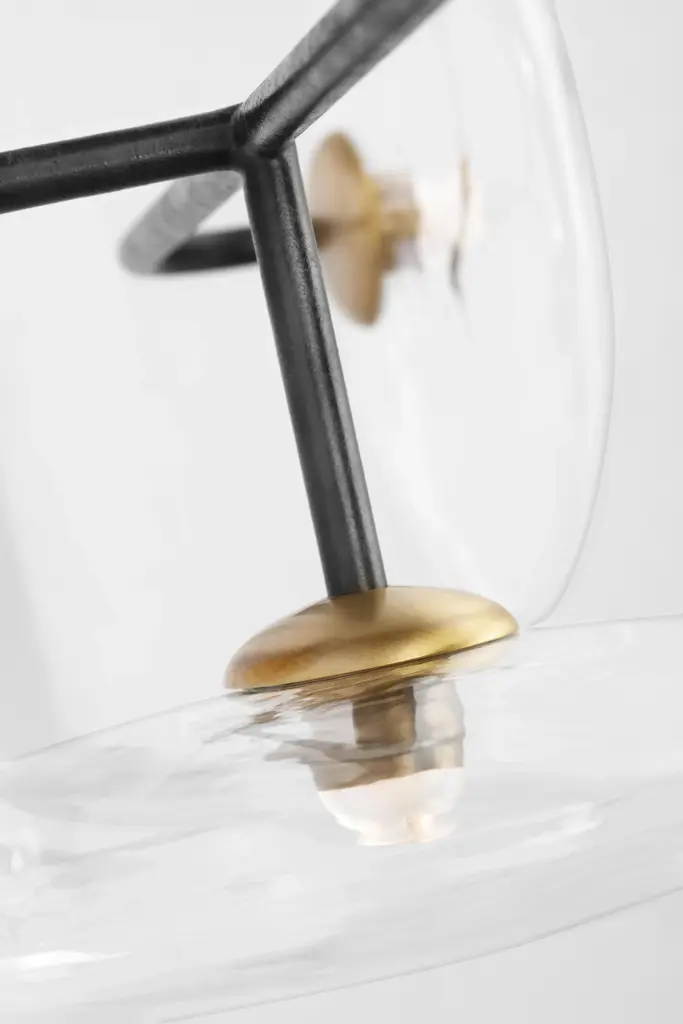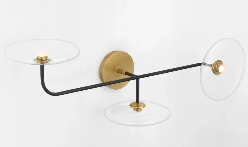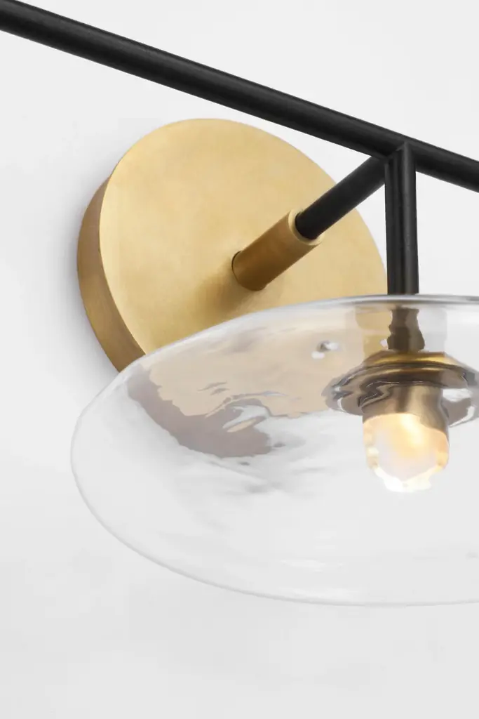 Calvino Large Arched Sconce in Aged Iron and Hand-Rubbed Antique Brass with Clear Glass Designer: Ian K. Fowler Height: 10.75" Extension: 8" Backplate: 4.25" Round Mounting: Hardwire Shade Detail: Clear Glass Socket: Dedicated LED Wattage: 6w (500lm) Safety Rating Location: DAMP