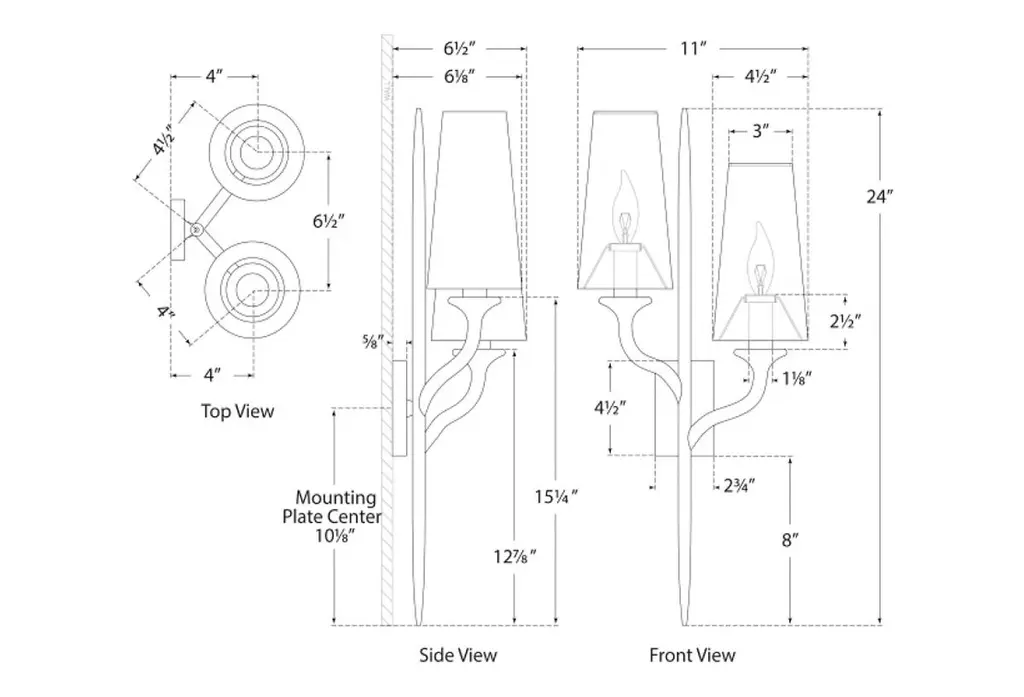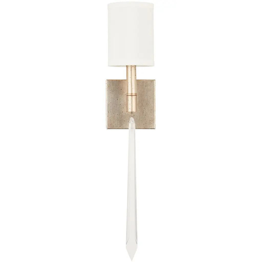 Designed by Julie Neill for Visual Comfort: This sconce is crafted of aluminum with branch-like detailing, a burnished silver-leaf finish, and white linen shades. Hardwired.