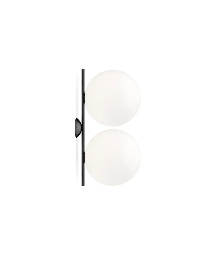 The latest addition to the IC Lights Collection: New IC Lights Ceiling/Wall Double comes with a double light source providing diffused light. The modern ceiling and wall sconce fixture gives a sense of serene calm and elegance to any stairwell, entryways, or hallway. New IC Lights Ceiling/Wall Double can be mounted on any wall or on the ceiling. Frame available in brass, black, chrome, and our newly launched red burgundy finish. Blown glass opal diffuser. The IC Lights collection showcases designer Michael Anastassiades' love of industrial simplicity as well as his profound technical skill. This authentic design is produced in Italy exclusively by Flos.