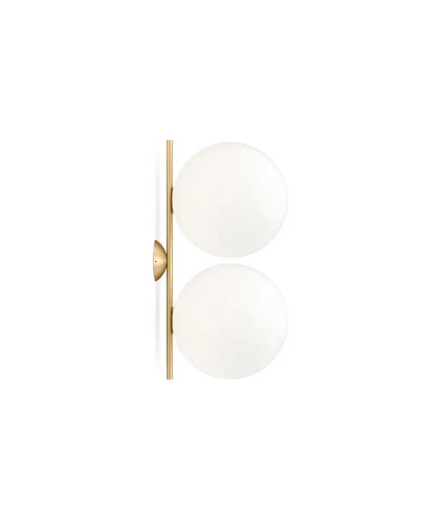 The latest addition to the IC Lights Collection: New IC Lights Ceiling/Wall Double comes with a double light source providing diffused light. The modern ceiling and wall sconce fixture gives a sense of serene calm and elegance to any stairwell, entryways, or hallway. New IC Lights Ceiling/Wall Double can be mounted on any wall or on the ceiling. Frame available in brass, black, chrome, and our newly launched red burgundy finish. Blown glass opal diffuser. The IC Lights collection showcases designer Michael Anastassiades' love of industrial simplicity as well as his profound technical skill. This authentic design is produced in Italy exclusively by Flos.