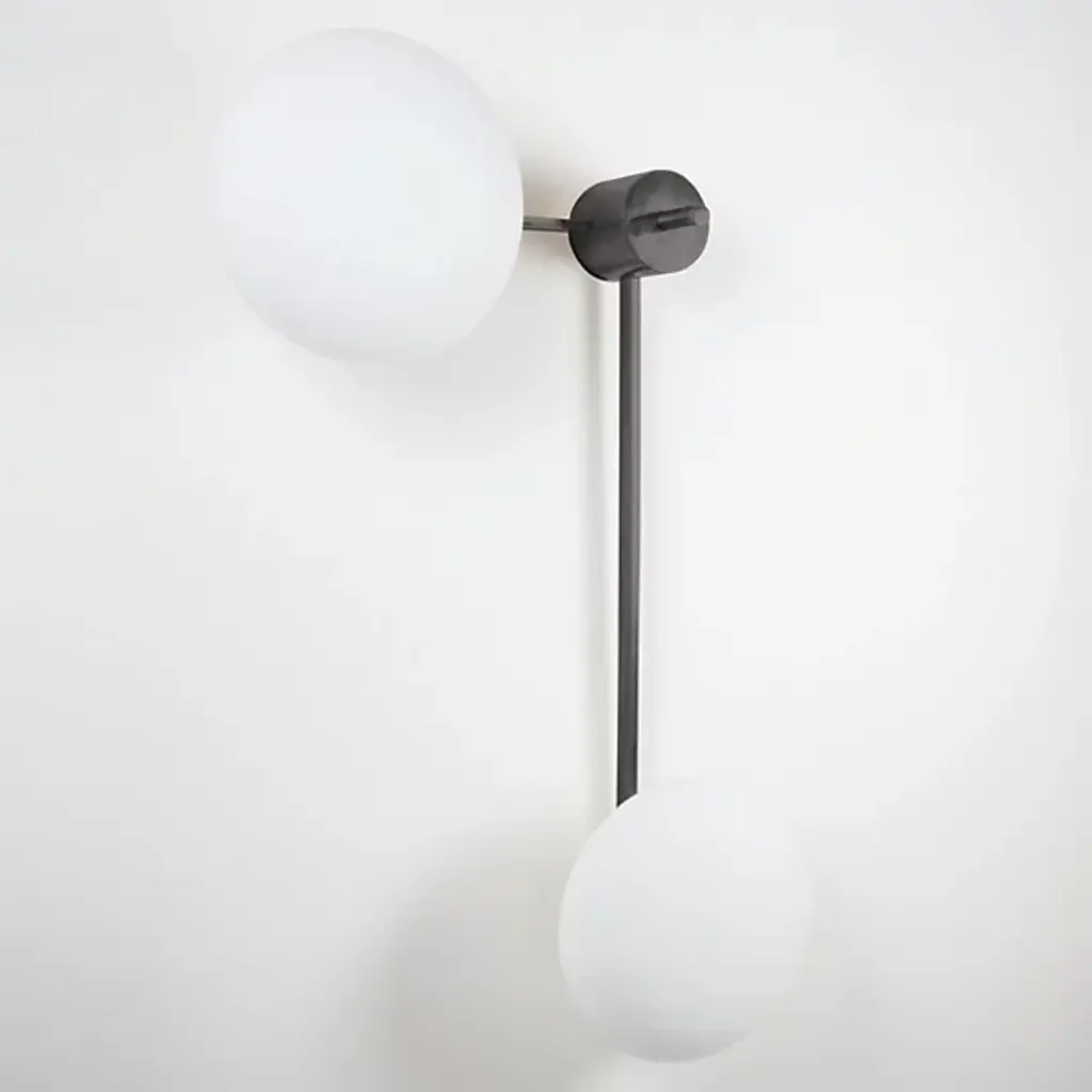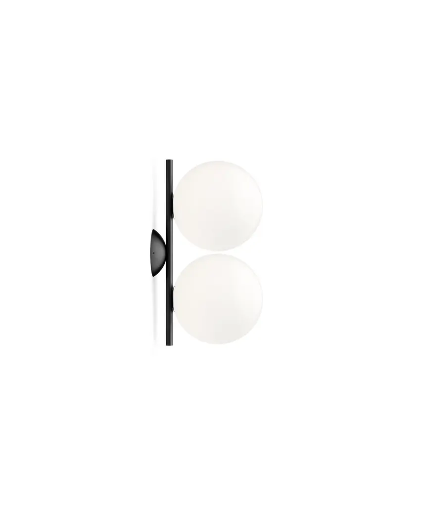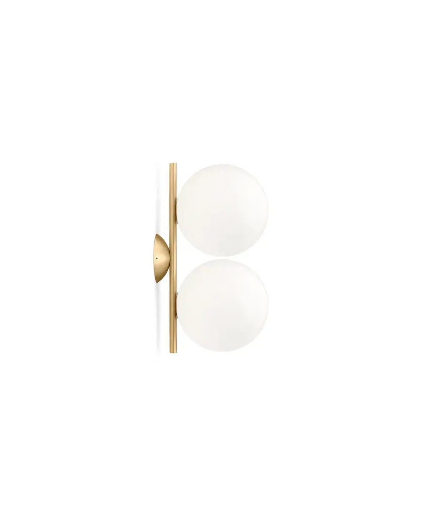 The latest addition to the IC Lights Collection: New IC Lights Ceiling/Wall Double comes with a double light source providing diffused light. The modern ceiling and wall sconce fixture gives a sense of serene calm and elegance to any stairwell, entryways, or hallway. New IC Lights Ceiling/Wall Double can be mounted on any wall or on the ceiling. Frame available in brass, black, chrome, and our newly launched red burgundy finish. Blown glass opal diffuser. The IC Lights collection showcases designer Michael Anastassiades' love of industrial simplicity as well as his profound technical skill. This authentic design is produced in Italy exclusively by Flos.
