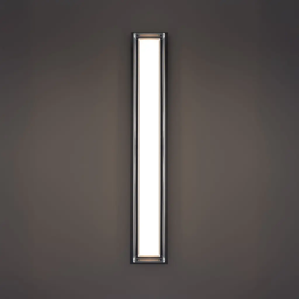 Frozen. The Ice Bar outdoor wall light showcases a substantial gleaming backplate behind a clear glass shade. The etched glass interior adds texture, creating a glowing rectangle of soft illumination from concealed, color temperature adjustable LEDs. Offered in 26 and 34-inch sizes, Ice Bar is finished in black.