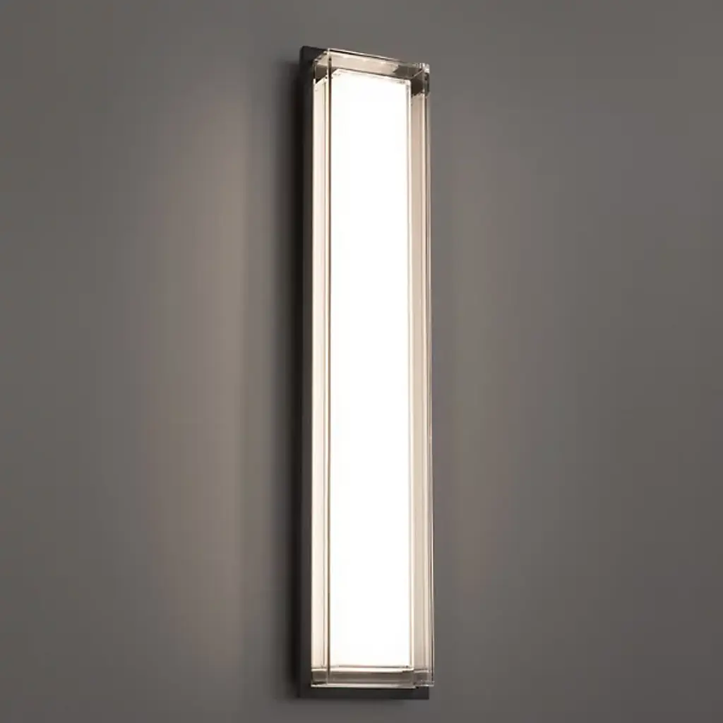 The Ice Bar Outdoor LED Wall Sconce from Modern Forms layers clear glass over etched surfaces to build depth within a rectangular frame. The substantial aluminum backplate provides weather protection while concealed LEDs illuminate the textured interior glass. Etched patterns create visual interest while diffusing harsh LED output into gentle ambient light. Color temperature adjustment enables seasonal customization of outdoor lighting warmth. The layered glass construction maintains optical clarity while adding texture that prevents glare and distributes illumination evenly across outdoor entertainment areas.