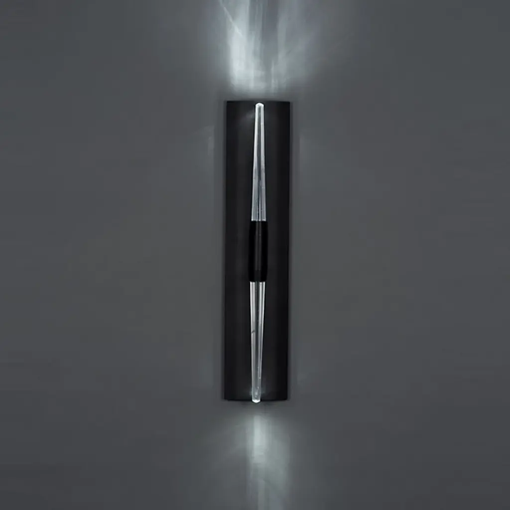Like fire and ice, the Boyd Lighting Icicle LED Wand Wall Sconce warmly lights two sharp stalactites of crystal-like glass, reflecting additional ambiance against the rectangular wall plate. The central band hides the LED modules, directing the light up and down without uncomfortable glare. The frosted glass has a more even type of diffusion, while in contrast, the clear glass creates liquefied reflections at each sparkling end.