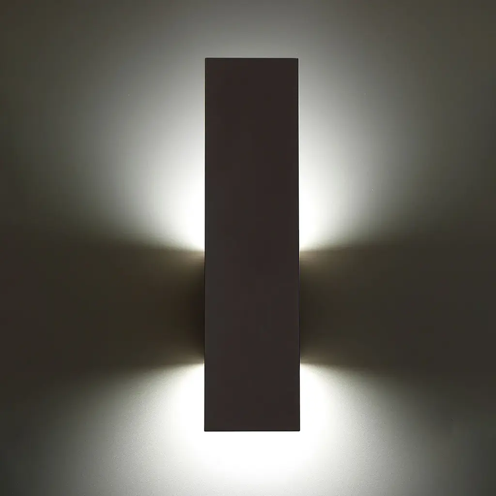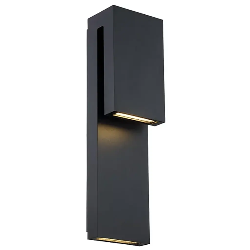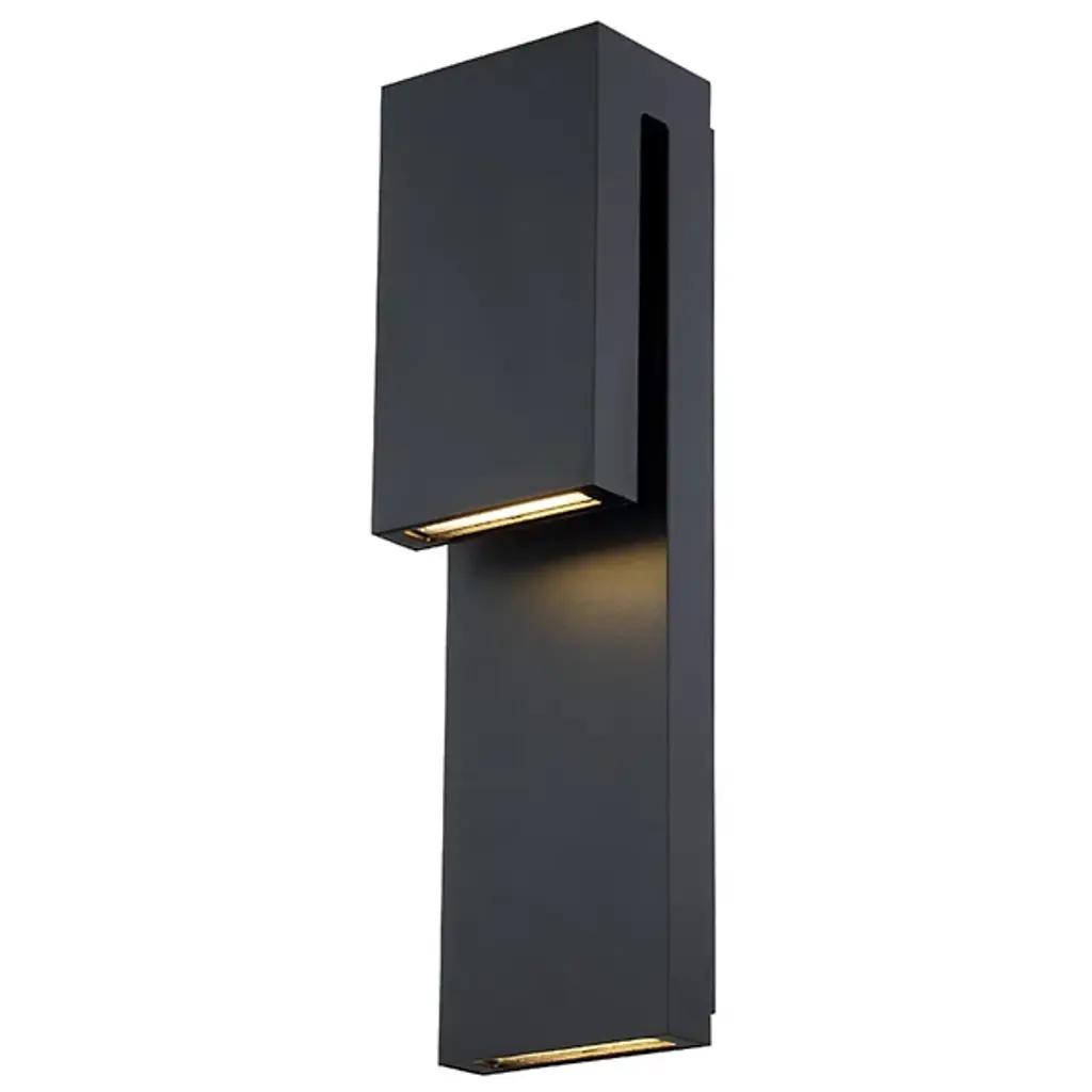 Linear architectural forms are accentuated from the up and down lights of the Icon outdoor LED wall sconce. Its shielded light source makes for low-glare illumination. Available in brushed aluminum, black and bronze finishes and two sizes, this durable Wet Location listed fixture of solid die-cast construction, with a powder coated finish, and a factory sealed light engine provides ultimate weather resistance.