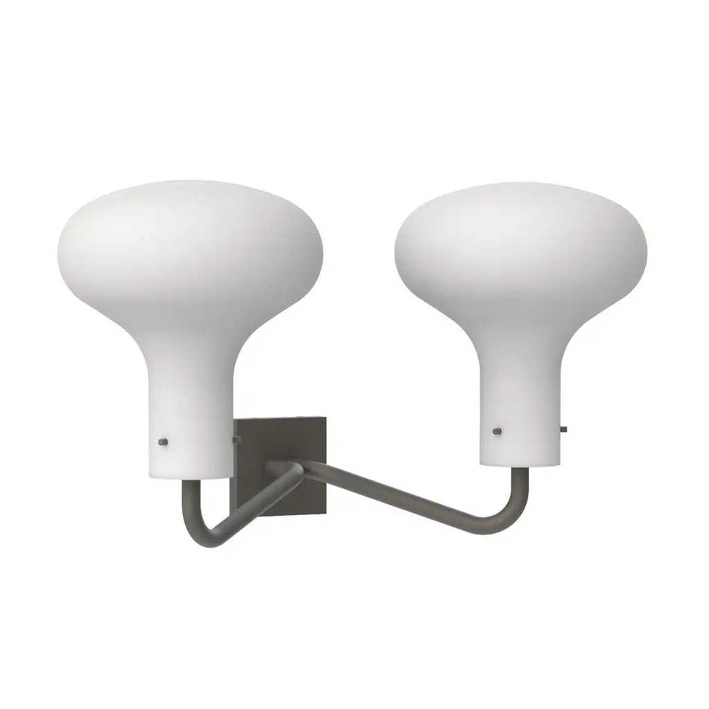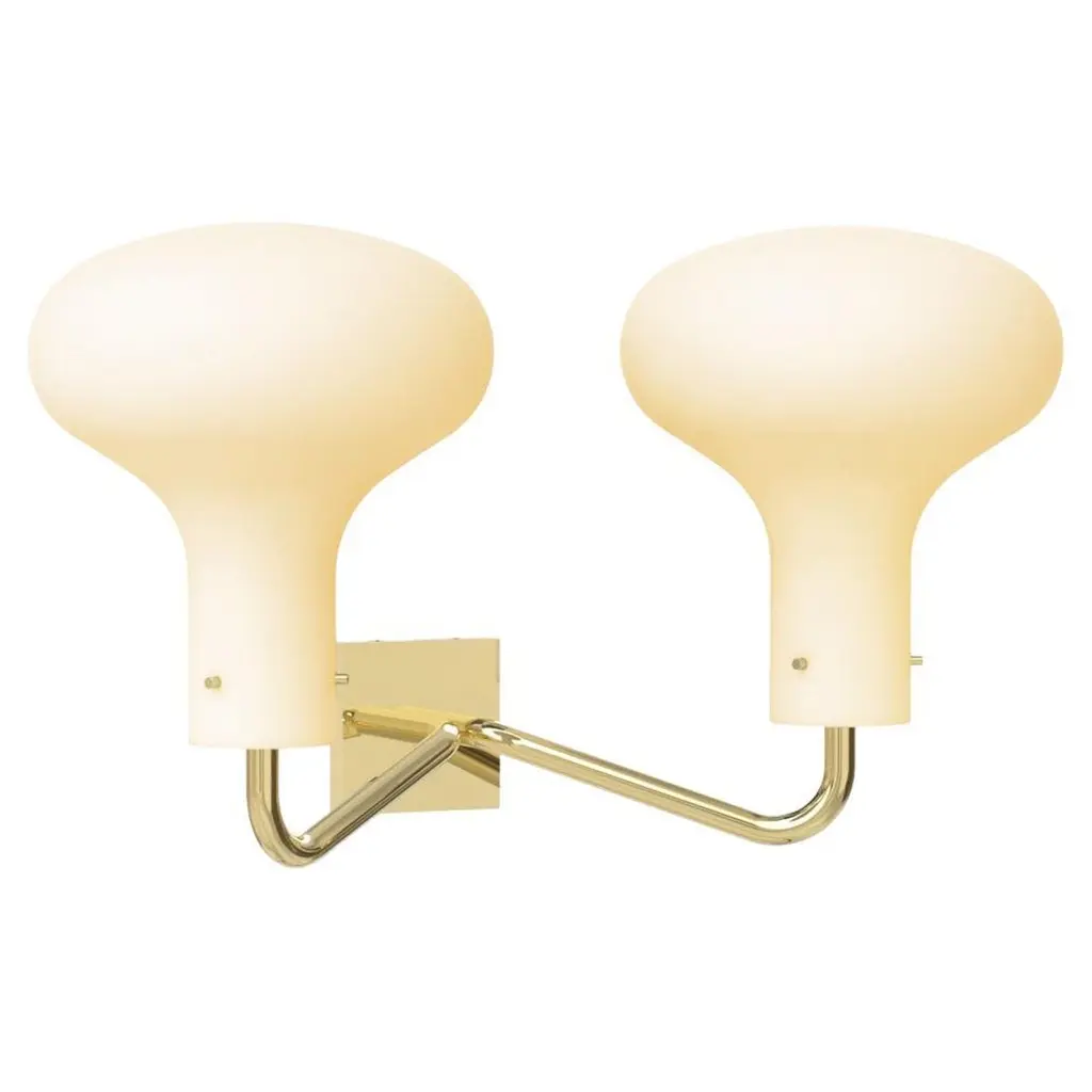 Ignazio Gardella 'Galleria' 2-Arm Wall Lamp in Satin Bronze for Tato Italia As often happened with Gardella, his designs were born from a specific need in an architectural project, and Galleria is no different. When designing the staircase at the GAM (Galleria d’Arte Moderna - Modern Art Gallery) in Milan, which leads to the Grassi family's art collection, the architect needed strong wall lighting. He studied a series of wall plaques from which emerged tubes surmounted by sober lampshades, to spread as much light as possible. From these the entire 'Galleria' family was born, with one to five arms, which make them extremely versatile.Executed in blown opaline glass and metal, this authorized re-edition of his iconic design is still crafted in Italy by Tato Italia using only the highest quality materials and exceptional attention to detail.Price is per item. Available in unlimited quantities and with choice of brass, satin bronze, satin nickel, or chrome hardware. Please specify metal selection when ordering. Also available in 1, 3, 4 and 5-arm variations in separate listings This listing is for the 'Galleria' wall lamp with two arms in satin bronze and glass.In stock lead time 12-14 weeks. Out of stock lead time can add an additional 12 weeks or longer. Inventory availability subject to change without notice. For time-sensitive orders, kindly inquire prior to purchasing.Accommodates two E26 LED bulbs max 8w. Not UL listed, but recommended UL listing available from authorized 3rd party vendor upon request for an additional fee.Made to order.All sales final.