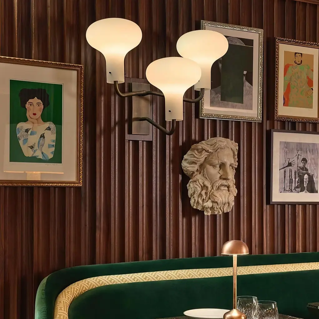 Ignazio Gardella 'Galleria' 3-Arm Wall Lamp in Brass and Glass for Tato Italia As often happened with Gardella, his designs were born from a specific need in an architectural project, and Galleria is no different. When designing the staircase at the GAM (Galleria d’Arte Moderna - Modern Art Gallery) in Milan, which leads to the Grassi family's art collection, the architect needed strong wall lighting. He studied a series of wall plaques from which emerged tubes surmounted by sober lampshades, to spread as much light as possible. From these the entire 'Galleria' family was born, with one to five arms, which make them extremely versatile.Executed in blown opaline glass and metal, this authorized re-edition of his iconic design is still crafted in Italy by Tato Italia using only the highest quality materials and exceptional attention to detail.Price is per item. Available in unlimited quantities and with choice of brass, satin bronze, satin nickel, or chrome hardware. Please specify metal selection when ordering. Also available in 1, 2, 4 and 5-arm variations in separate listings This listing is for the 'Galleria' wall lamp with three arms in brass and glass.In stock lead time 12-14 weeks. Out of stock lead time can add an additional 12 weeks or longer. Inventory availability subject to change without notice. For time-sensitive orders, kindly inquire prior to purchasing.Accommodates three E26 LED bulbs max 8w. Not UL listed, but recommended UL listing available from authorized 3rd party vendor upon request for an additional fee.Made to order.All sales final.