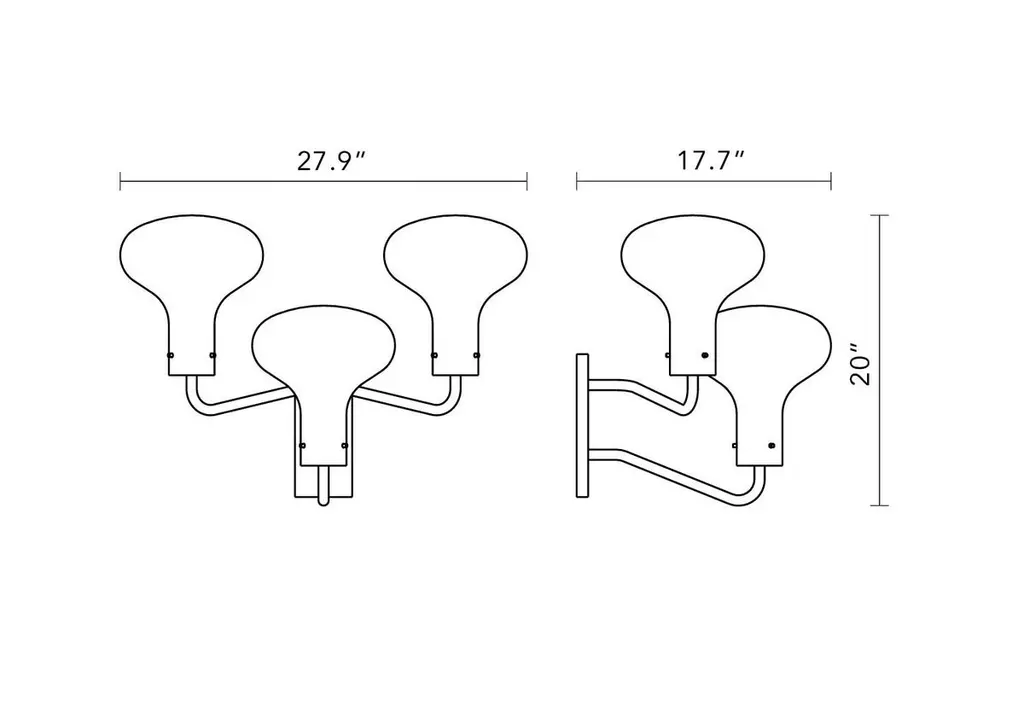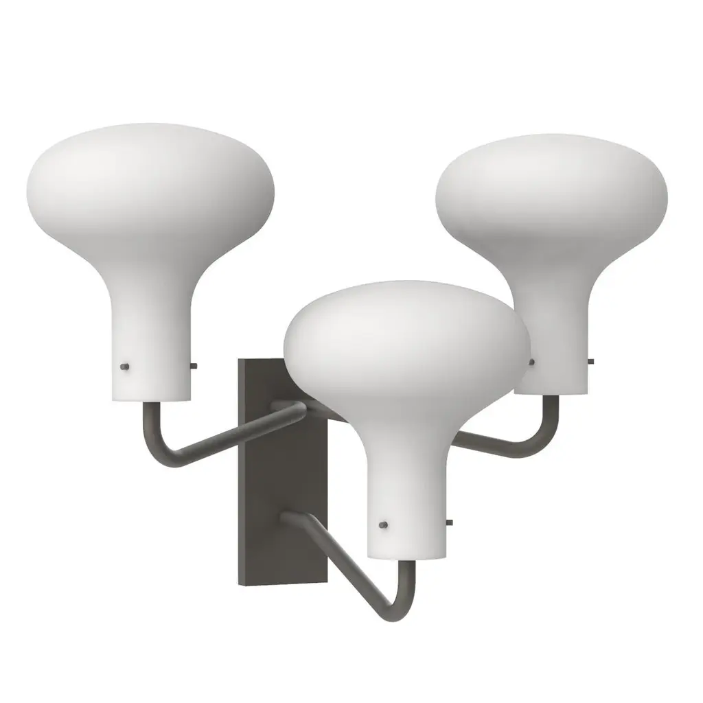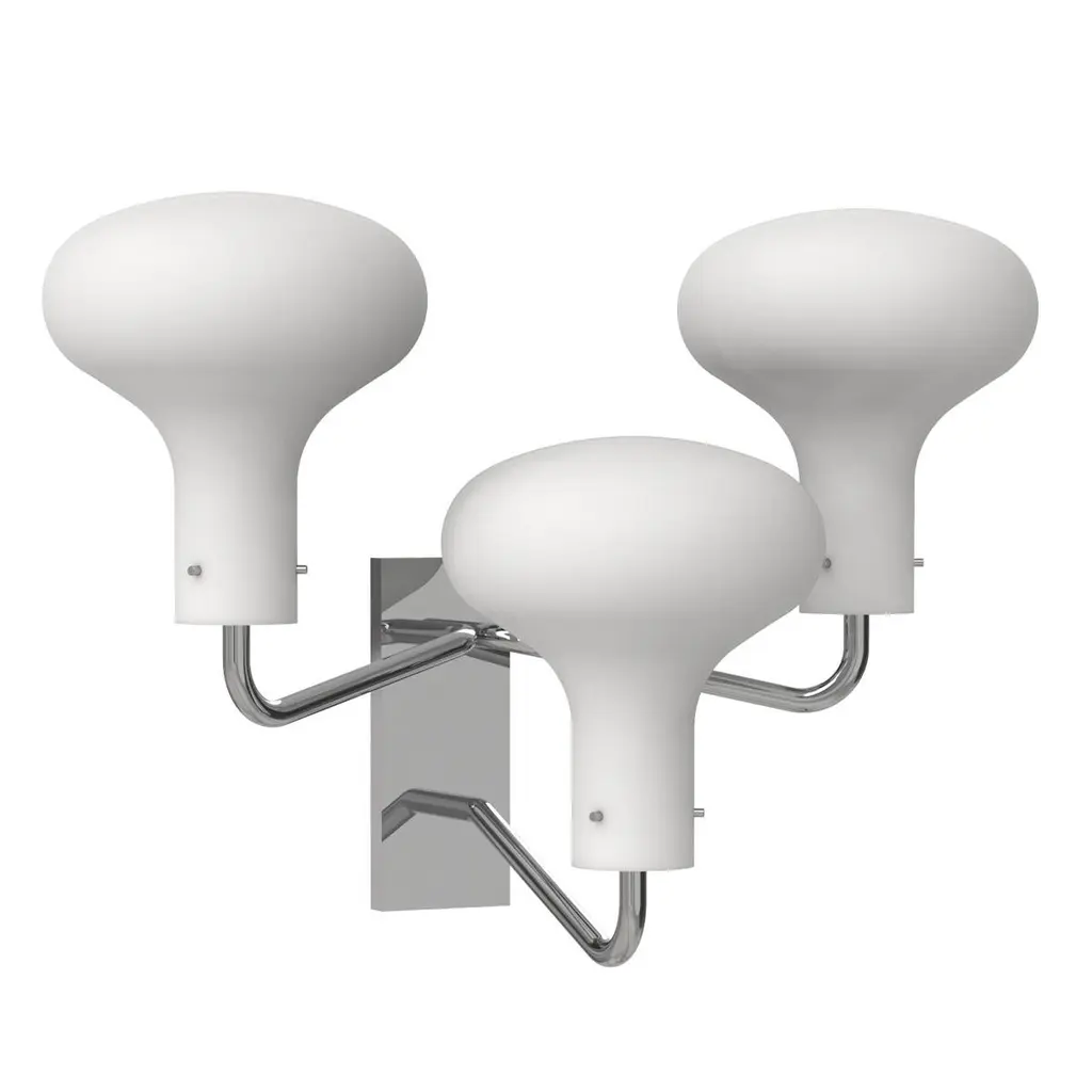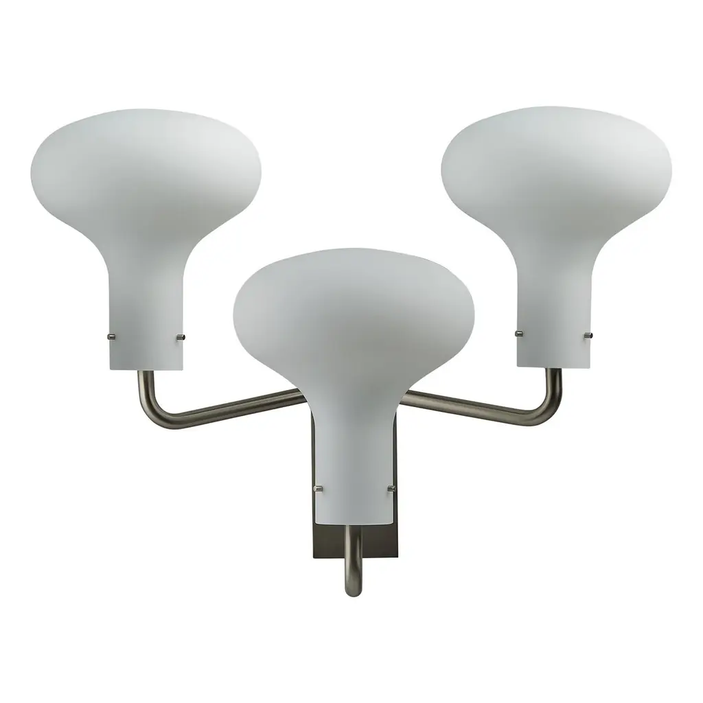 Ignazio Gardella 'Galleria' 3-Arm Wall Lamp in Satin Nickel for Tato Italia As often happened with Gardella, his designs were born from a specific need in an architectural project, and Galleria is no different. When designing the staircase at the GAM (Galleria d’Arte Moderna - Modern Art Gallery) in Milan, which leads to the Grassi family's art collection, the architect needed strong wall lighting. He studied a series of wall plaques from which emerged tubes surmounted by sober lampshades, to spread as much light as possible. From these the entire 'Galleria' family was born, with one to five arms, which make them extremely versatile.Executed in blown opaline glass and metal, this authorized re-edition of his iconic design is still crafted in Italy by Tato Italia using only the highest quality materials and exceptional attention to detail.Price is per item. Available in unlimited quantities and with choice of brass, satin bronze, satin nickel, or chrome hardware. Please specify metal selection when ordering. Also available in 1, 2, 4 and 5-arm variations in separate listings This listing is for the 'Galleria' wall lamp with three arms in satin nickel and glass.In stock lead time 12-14 weeks. Out of stock lead time can add an additional 12 weeks or longer. Inventory availability subject to change without notice. For time-sensitive orders, kindly inquire prior to purchasing.Accommodates three E26 LED bulbs max 8w. Not UL listed, but recommended UL listing available from authorized 3rd party vendor upon request for an additional fee.Made to order.All sales final.
