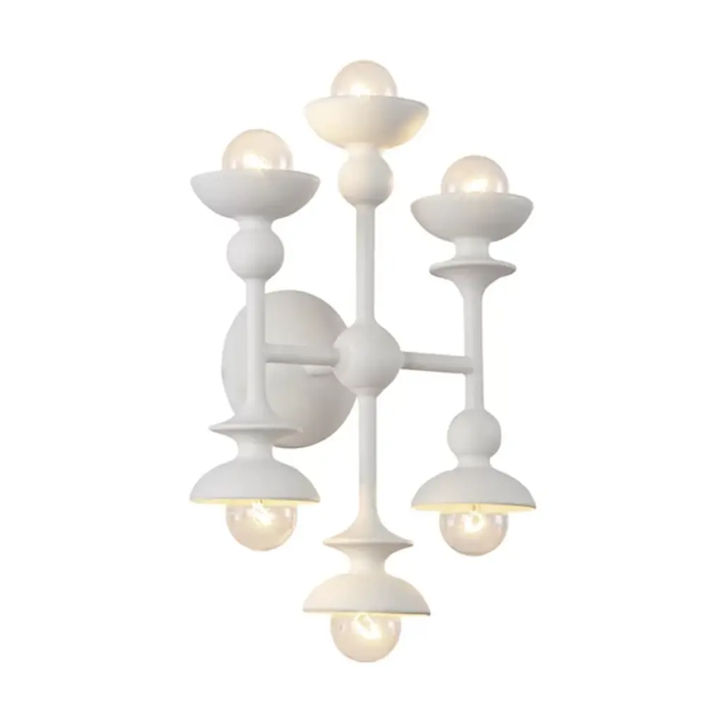 This lithe sconce makes a big impact. Three arms swoop from the wall plate, with the center arm arcing just a bit higher to create a subtle tiered effect. The blackened steel finish keeps the look clean and modern, with all the focus on the graceful curves and your favorite candelabra bulbs. We love Iiona flanking a buffet, lining a long hallway or serving as dramatic bedside lighting.