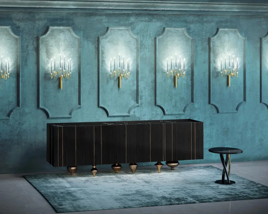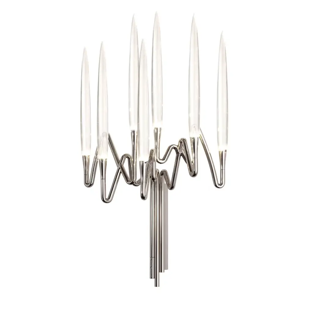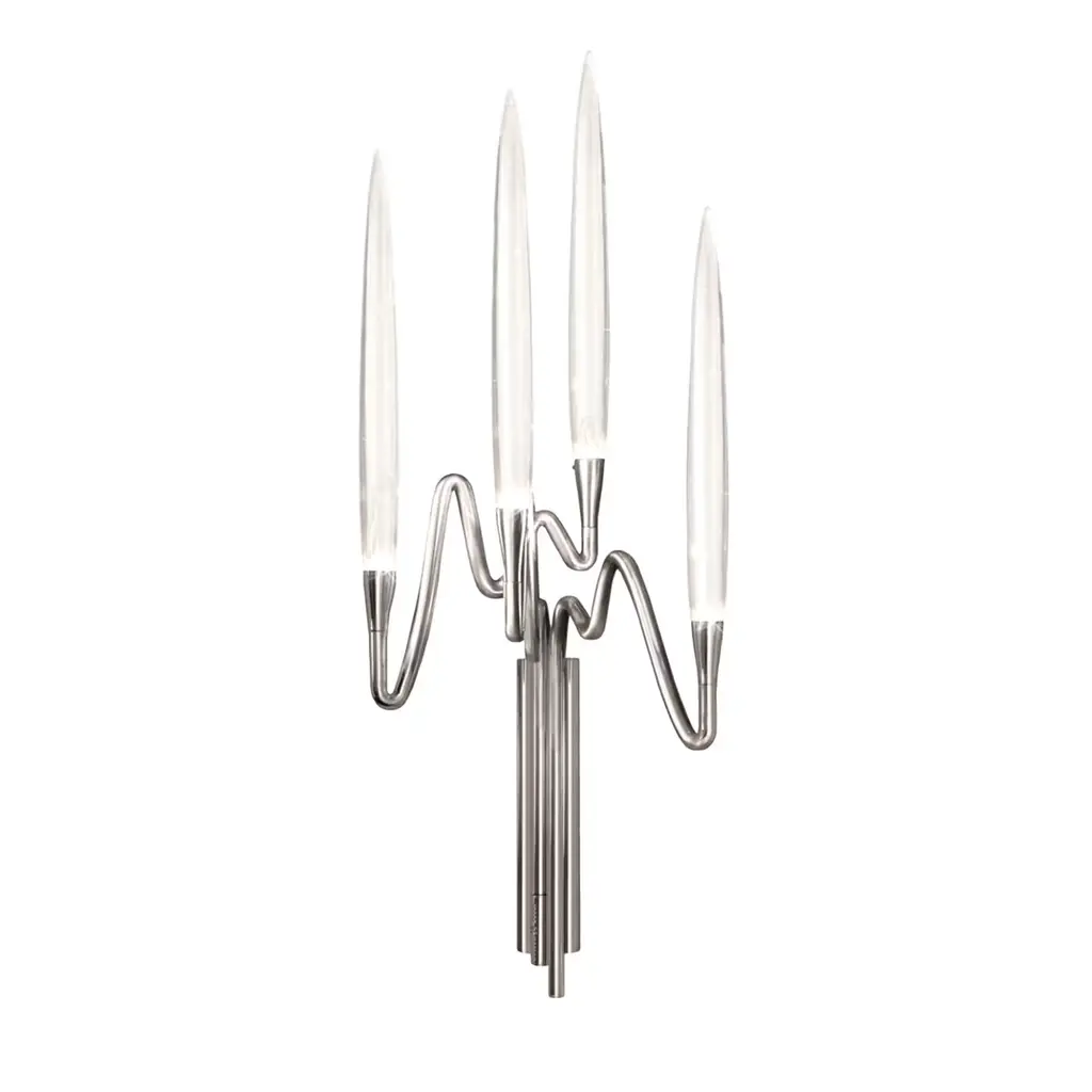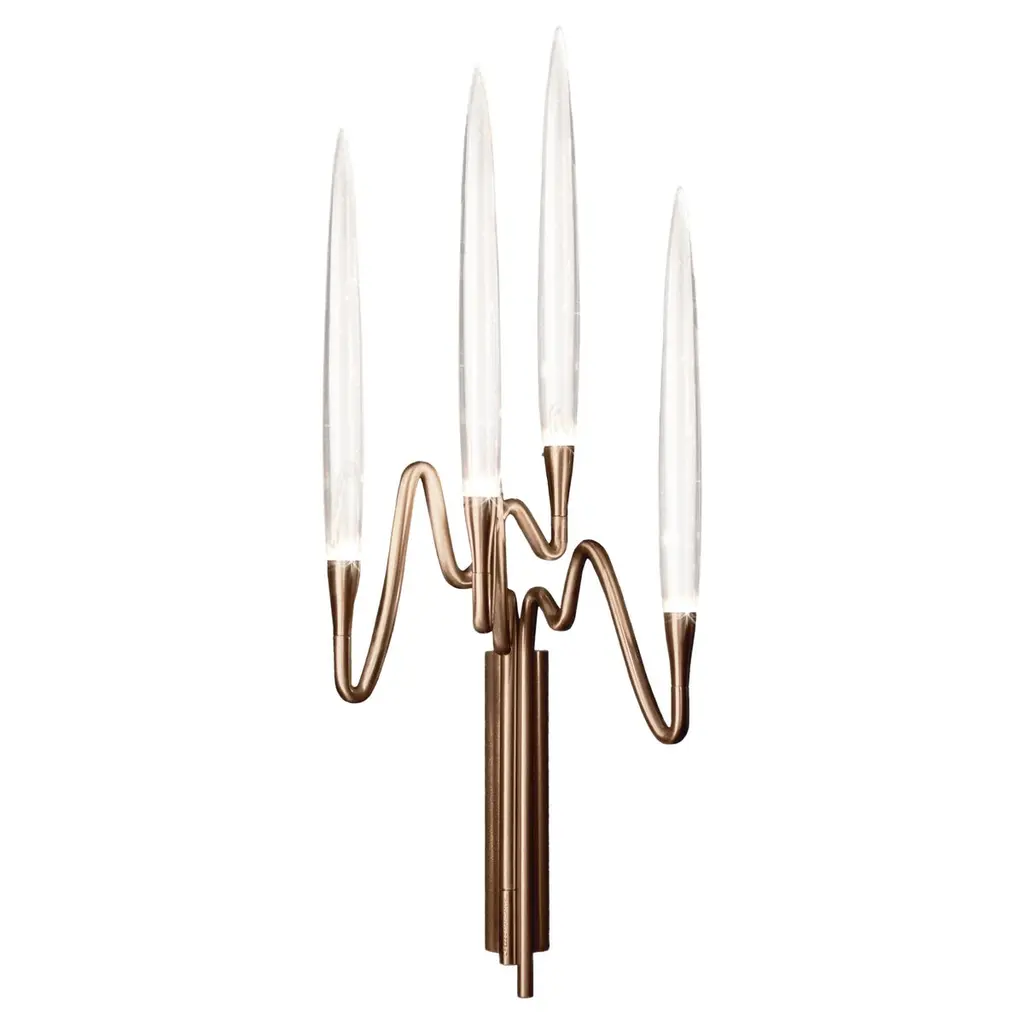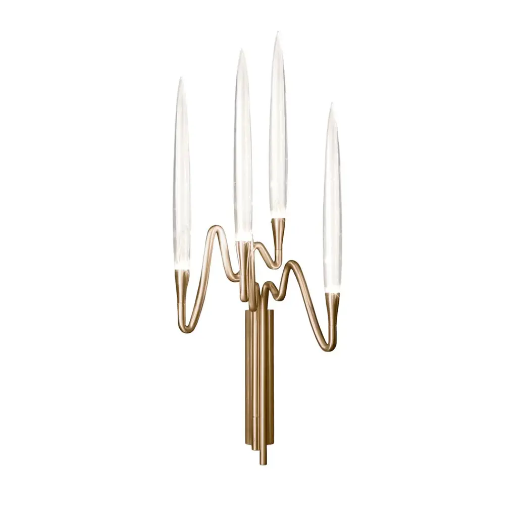 Inspired by Arabic calligraphic art and the icon of the classical candelabrum is Il Pezzo 3, a collection of lamps with a hand-forged brass structure and elegant “candles” crafted from hand blown crystal, according to the noble Tuscan artisan tradition. The candles are illuminated using the latest LED technology, creating a sophisticated and romantic light. Experiencing the exquisite craftsmanship of this piece, combined with highly advanced technology, is truly fascinating.Notably, the lamp features a distinctive element, its “Missing Piece”(“Pezzo Mancante” in Italian): a small brass cylinder containing the serial number, guaranteeing its authenticity and individuality.Custom finishes are also available to suit every preference.All our masterpieces are meticulously crafted in our Atelier located in Florence, Italy, from a small team of people driven by a shared passion for quality and beauty. We constantly strive to create unparalleled works of art, where each piece is a testament to our commitment to craftsmanship and innovation.Structure: hand-carved brassFinish: gold finish brassDiffusers: solid crystalLight source: 2.700K LED, CRI>90.Size: 27x20,5xH66,5 cm - 10.3"x8"xH26.2"ETL certified UL and CSA standards compliant.