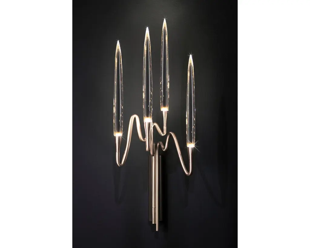 Inspired by Arabic calligraphic art and the icon of the classical candelabrum is Il Pezzo 3, a collection of lamps with a hand-forged brass structure and elegant “candles” crafted from hand blown crystal, according to the noble Tuscan artisan tradition. The candles are illuminated using the latest LED technology, creating a sophisticated and romantic light. Experiencing the exquisite craftsmanship of this piece, combined with highly advanced technology, is truly fascinating.Notably, the lamp features a distinctive element, its “Missing Piece”(“Pezzo Mancante” in Italian): a small brass cylinder containing the serial number, guaranteeing its authenticity and individuality.Custom finishes are also available to suit every preference.All our masterpieces are meticulously crafted in our Atelier located in Florence, Italy, from a small team of people driven by a shared passion for quality and beauty. We constantly strive to create unparalleled works of art, where each piece is a testament to our commitment to craftsmanship and innovation.Structure: hand-carved brassFinish: satin brassDiffusers: solid crystalLight source: 2.700K LED, CRI>90.Size: 27x20,5xH66,5 cm - 10.3"x8"xH26.2"ETL certified UL and CSA standards compliant.