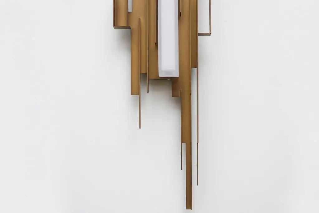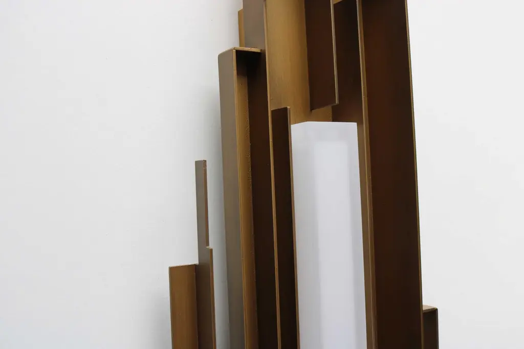 Impressive Brutalist Style Wall Light / Sconce Metal Sculpted Lights Gold Brass
